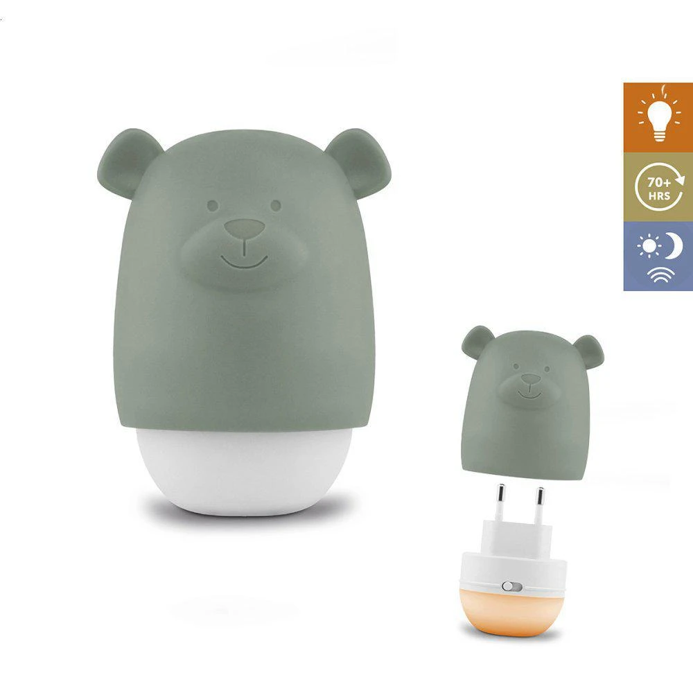 Medvedík sa nabíja priamo v zásuvke. Nepotrebujete žiadny ďalší kábel. Jednoducho zložíte silikónový kryt s medvedíkom a zapojíte svetlo do zásuvky.