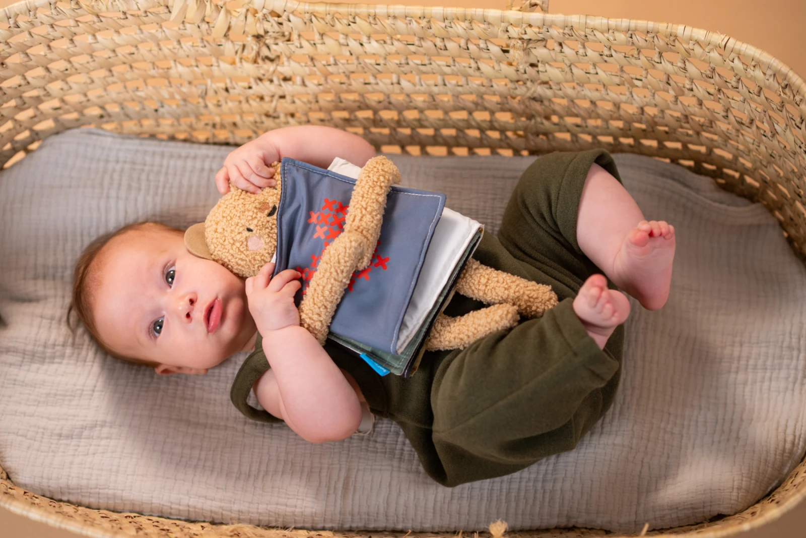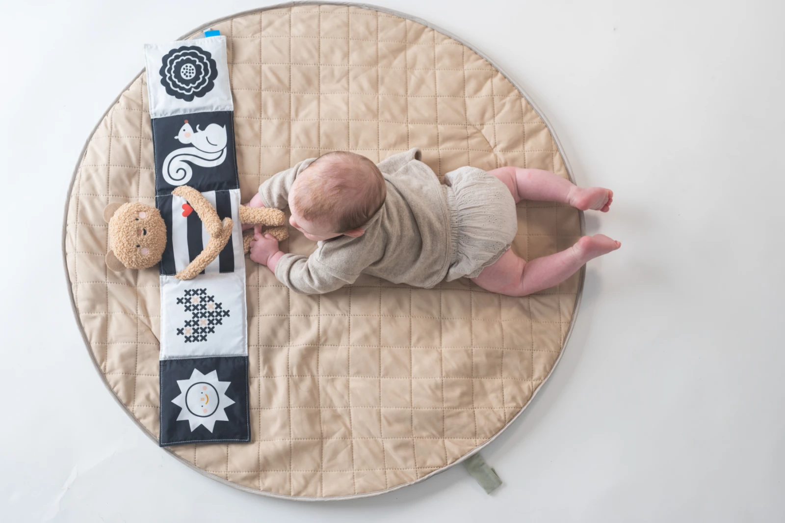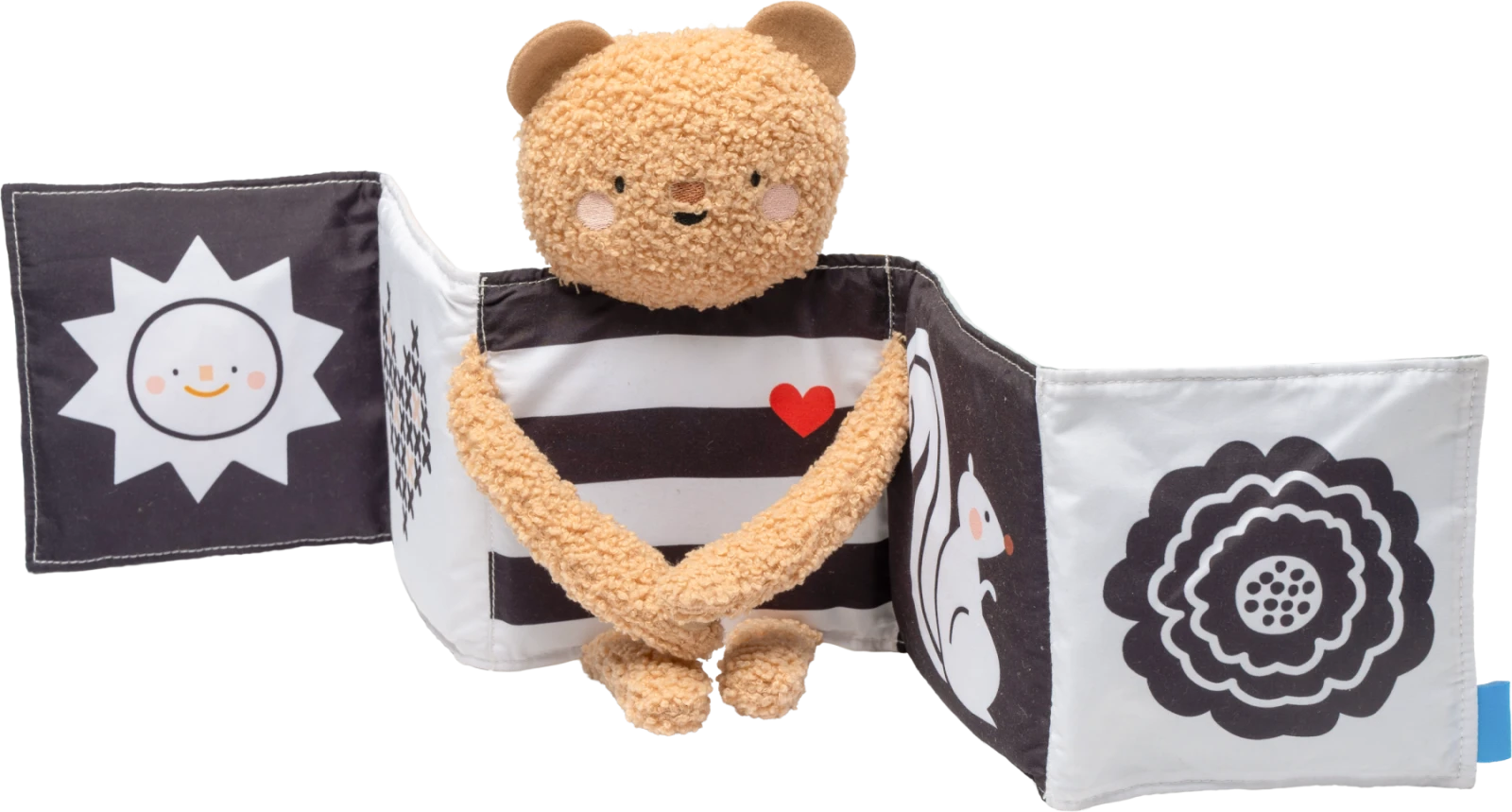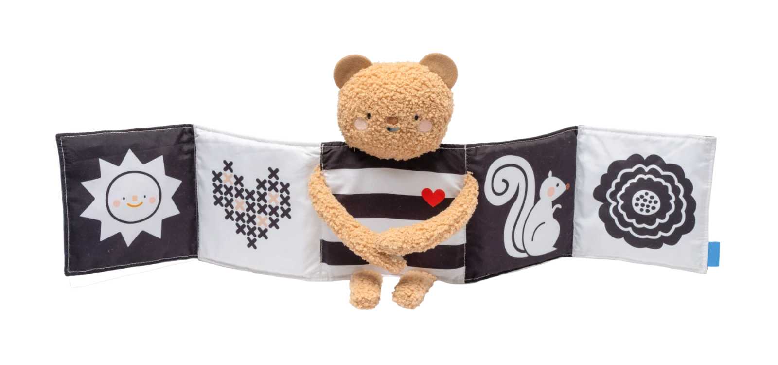 - Rôzne textúry, šušťanie a štítky podporujú rozvoj hmatu aj sluchu