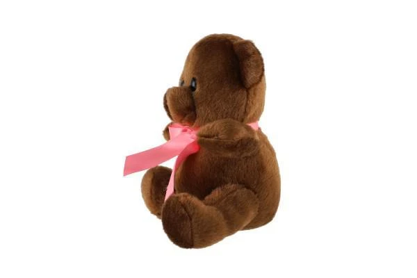 Medvedík sediaci s mašľou plyš 15 cm tmavo hnedý