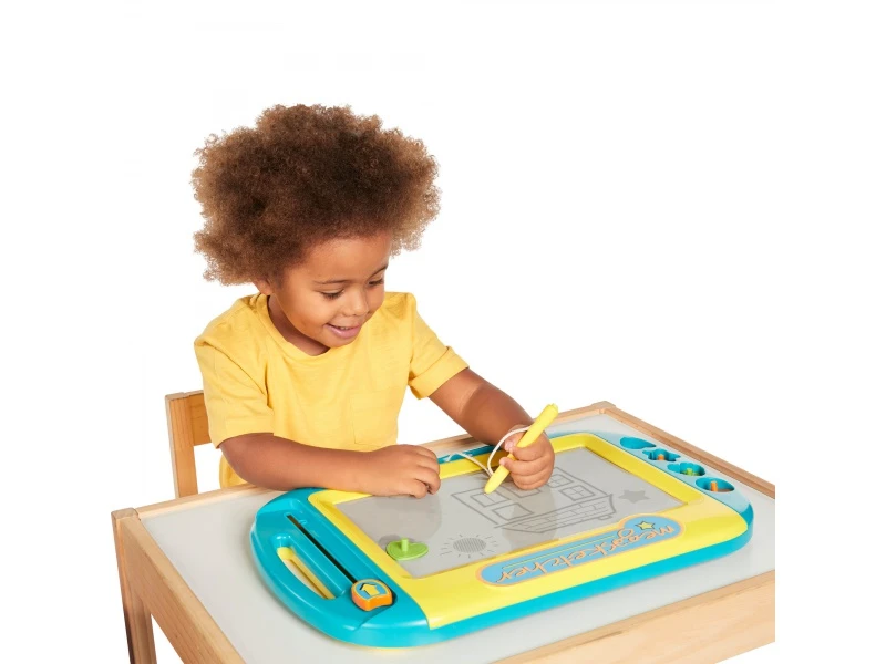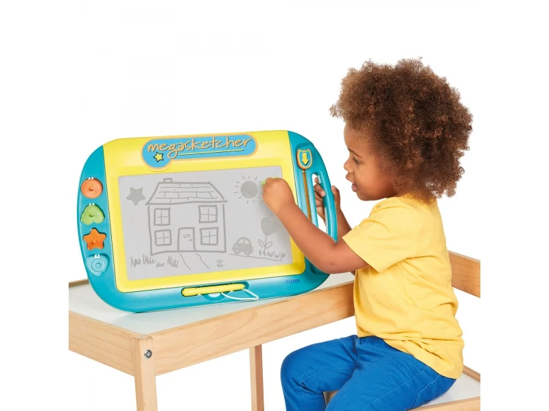 Megasketcher je magnetická tabuľa, na ktorú môže vaše dieťa mnohokrát kresliť a písať.