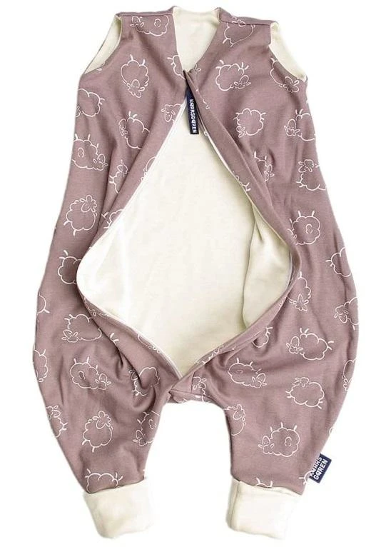 - bavlnený detský spací vak s podšívkou z merino vlny as motívom ovečiek.