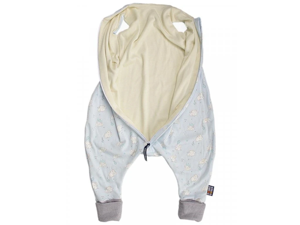 - Bavlnený detský spací vak s podšívkou as nápletmi z merino vlny.