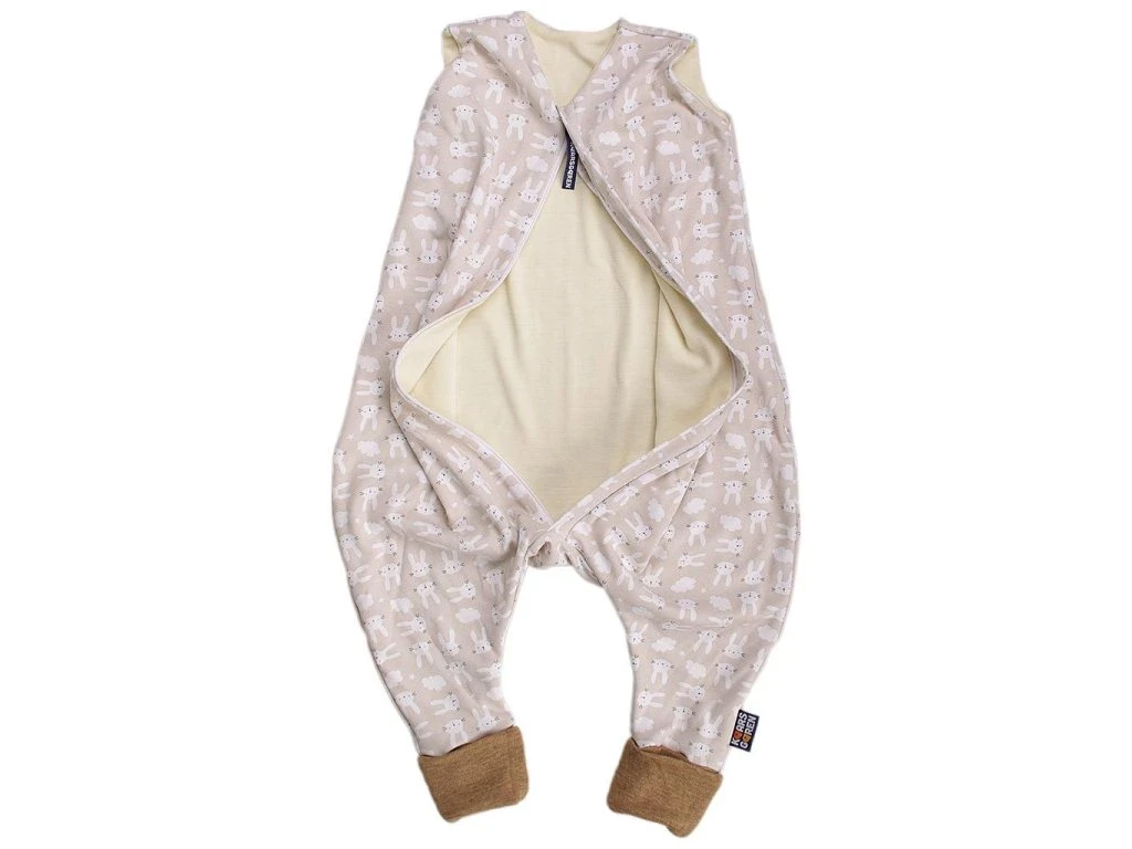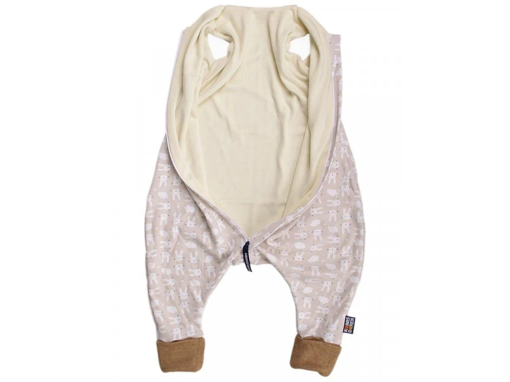 - Bavlnený detský spací vak s podšívkou as nápletmi z merino vlny.