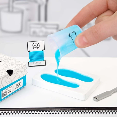Praktická zábava: Namixujte, vytvarujte a zostavte si svoje mini tenisky pomocou dodaných materiálov a nástrojov.