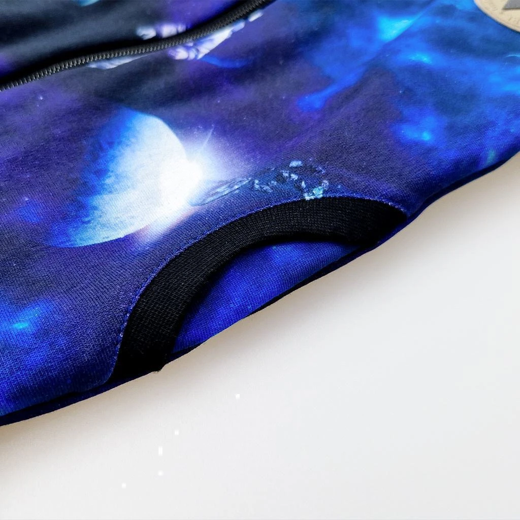 Rukávy mikiny sú ukončené širokými nápletmi, ktoré môžete vyhrnúť a prispôsobiť dĺžku rukávov aktuálnej veľkosti dieťaťa. Týmto spôsobom sa mikina prispôsobí viac veľkostiam a dieťa ju môže nosiť o to dlhšie. Náplet ukončuje mikinu a vďaka tomu poskytuje komfortné nosenie, podporí nevykasávanie.