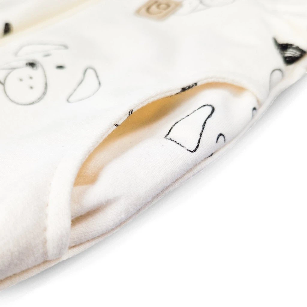 Rukávy mikiny sú ukončené širokými nápletmi, ktoré môžete vyhrnúť a prispôsobiť dĺžku rukávov aktuálnej veľkosti dieťaťa. Týmto spôsobom sa mikina prispôsobí viac veľkostiam a dieťa ju môže nosiť o to dlhšie. Náplet ukončuje mikinu a vďaka tomu poskytuje komfortné nosenie, podporí nevykasávanie.