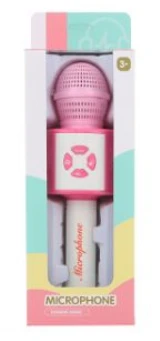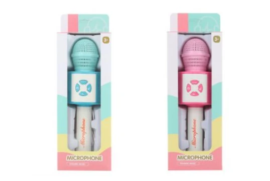 Plastový mikrofón na batérie. Je možné prepojiť s MP3 prehrávačom alebo mobilným telefónom. Napájanie 3 AA batérie (nie sú súčasťou balenia). Rozmery balenia cca 10,5 x 31,5 x 8 cm.