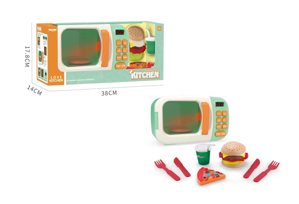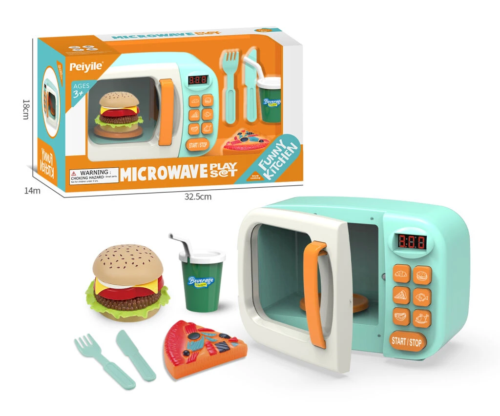 Obsahuje mikrovlnku, hamburger, kúsok pizze, príbor a pitie. Vydáva zvukové a svetelné efekty na batérie 3xAA, ktoré sú súčasťou balenia.
