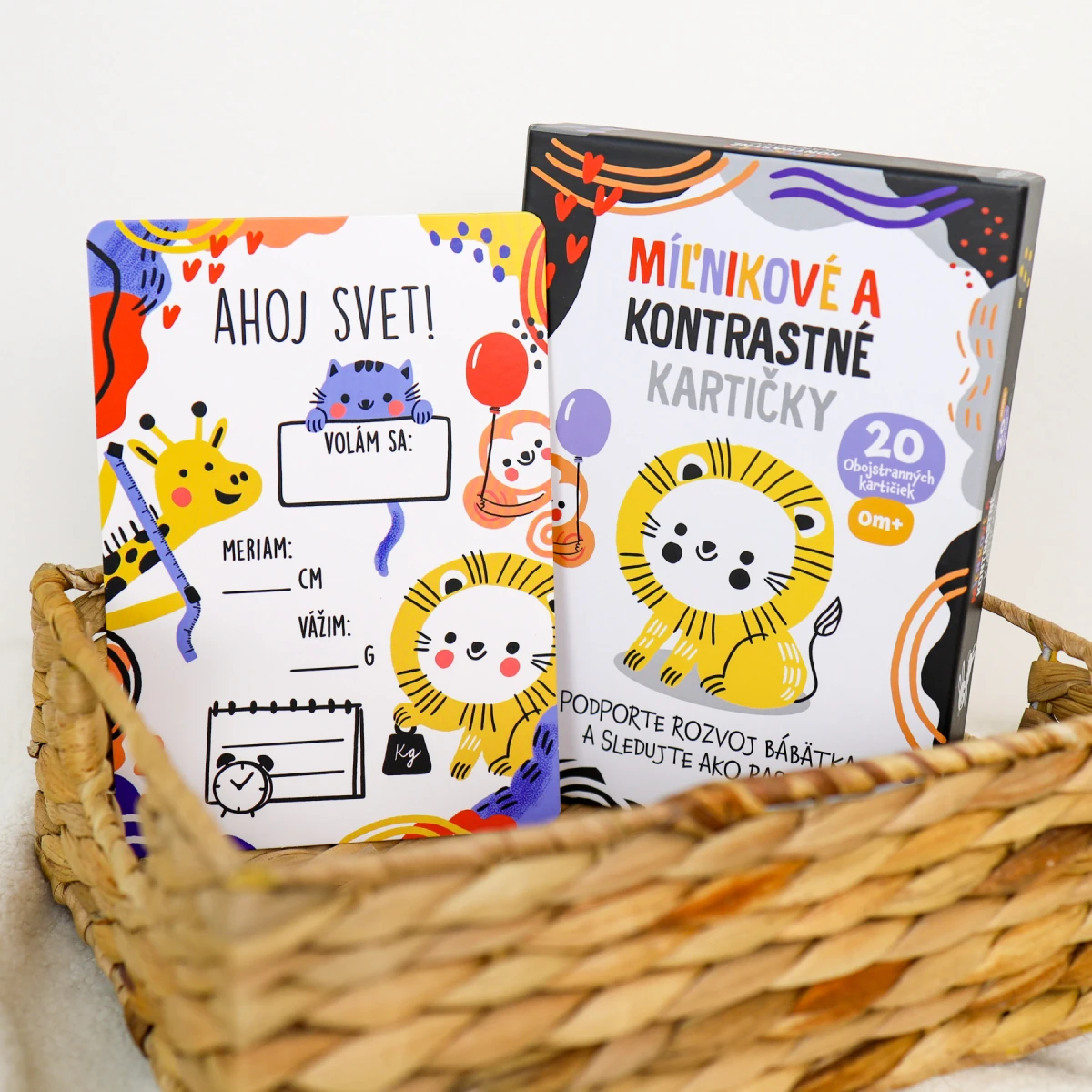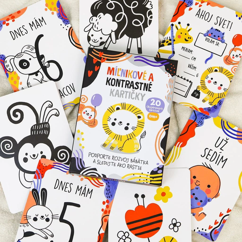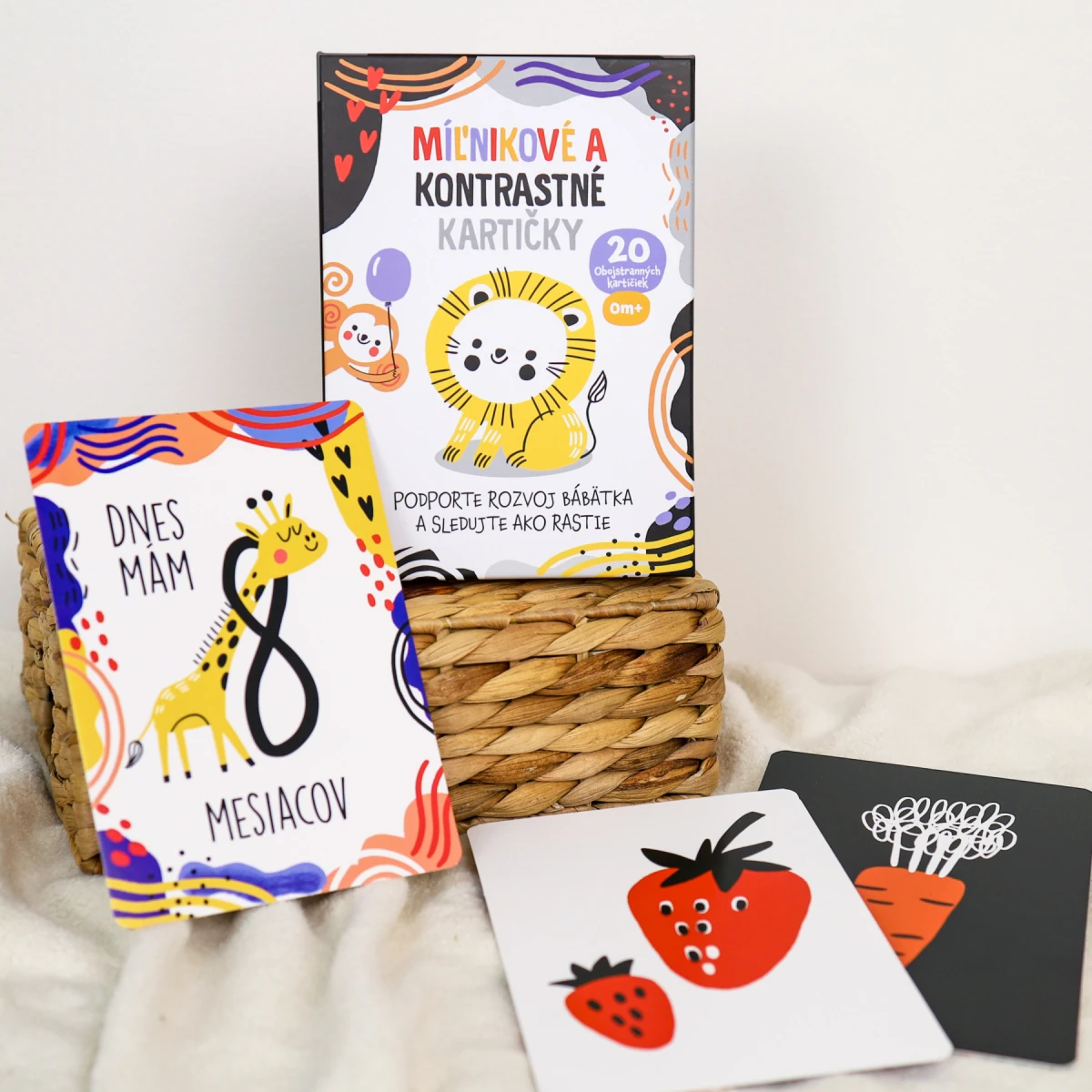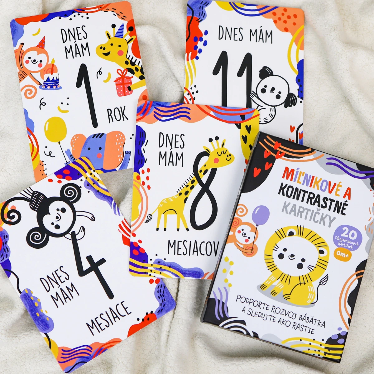 Sada obsahuje 20 obojstranných kartičiek, z ktorých každá strana prináša niečo jedinečné: na jednej nájdete míľnikové kartičky, ktoré zachytia prvé kroky, úsmevy a ďalšie dôležité momenty, a na druhej strane kontrastné kartičky, ktoré stimulujú zrakový vývoj novorodencov. Spojenie týchto dvoch funkcií robí túto sadu ideálnym nástrojom pre každodenné používanie.