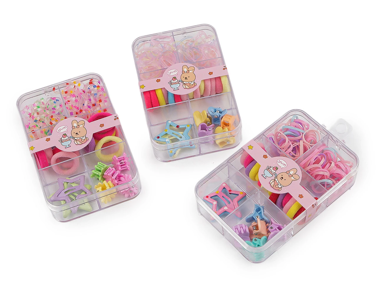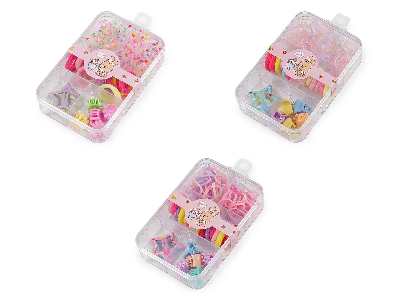 Táto sada obsahuje kombináciu malých štipcov, textilných aj silikónových gumičiek a sponiek , vďaka ktorým je možné ľahko vytvoriť vrkôčiky, copy aj jemné účesy z drobných pramienkov vlasov.
