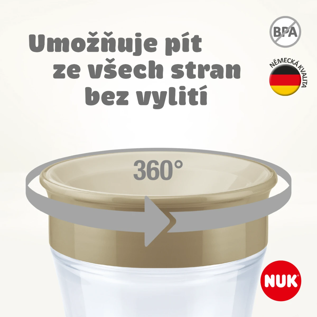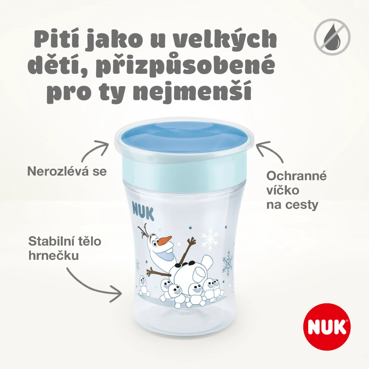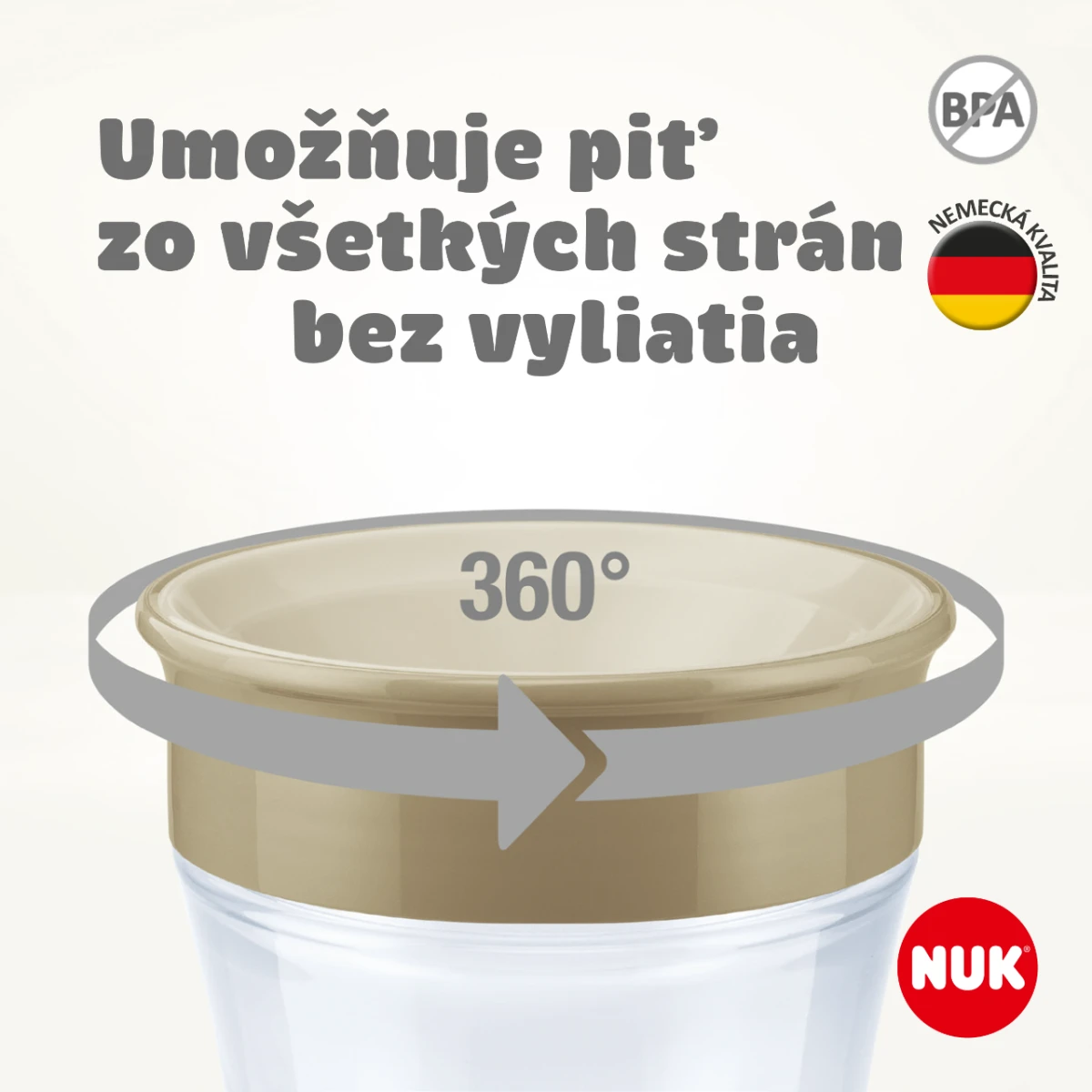 Hrnček NUK Magic Cup umožňuje malým deťom piť ako veľké deti. 360° pitný okraj podporuje a pomáha piť zo všetkých strán – žiadne držadlá a pitie takmer ako z normálneho hrnčeka. Jediný „kúzelný rozdiel“ je ten, že tekutina z hrnčeka nevytečie vďaka silikónovému disku, ktorý utesňuje viečko zvnútra. Pitie je detská hra - stačí jednoducho sať okraj hrnčeka.