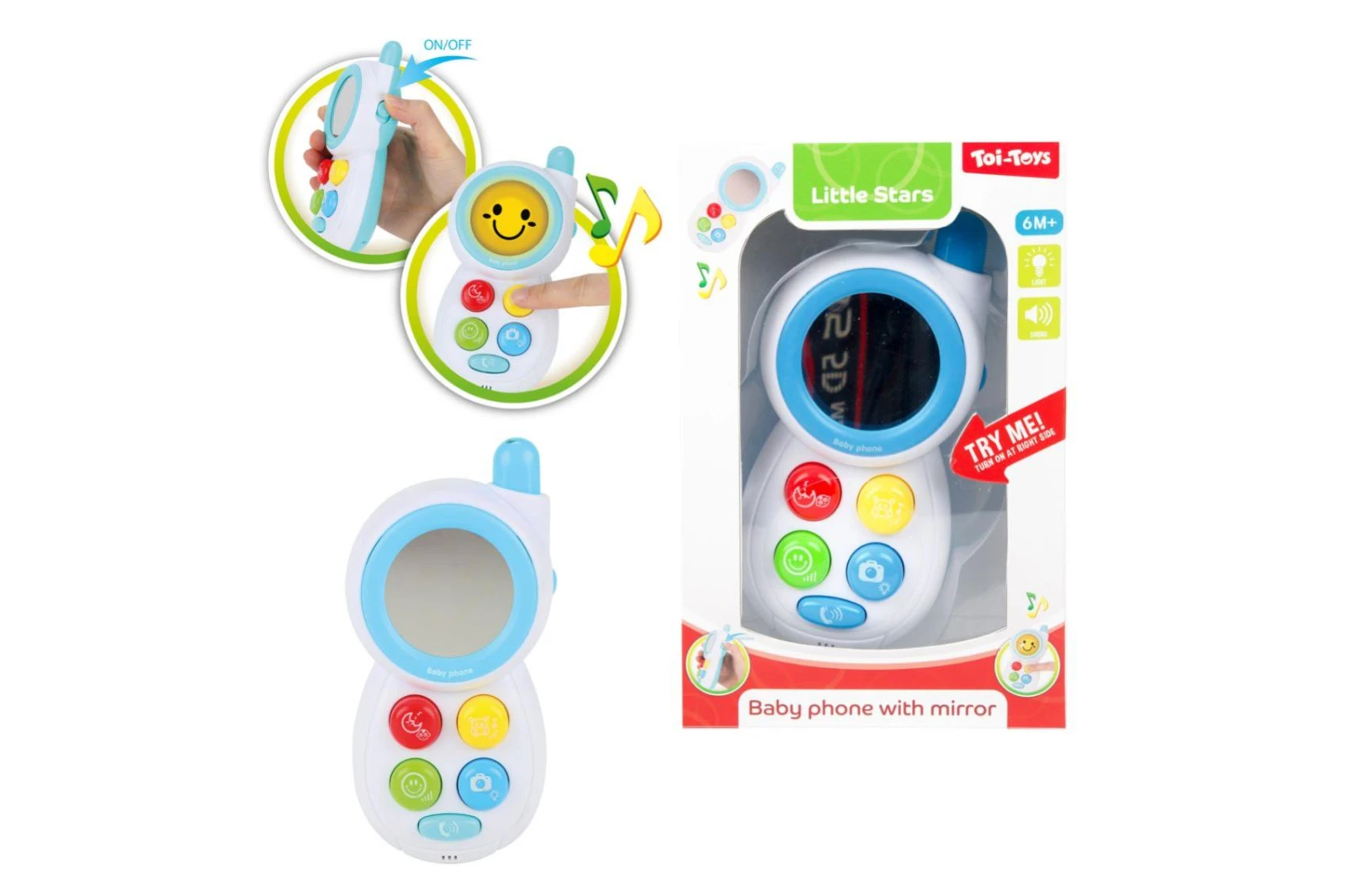 Farebné tlačidlá spúšťa veselé zvuky a melódie, ktoré podporujú zmyslový rozvoj dieťaťa. Veľké zrkadlo na prednej strane umožňuje deťom objavovať svoj odraz a rozvíjať vnímanie.