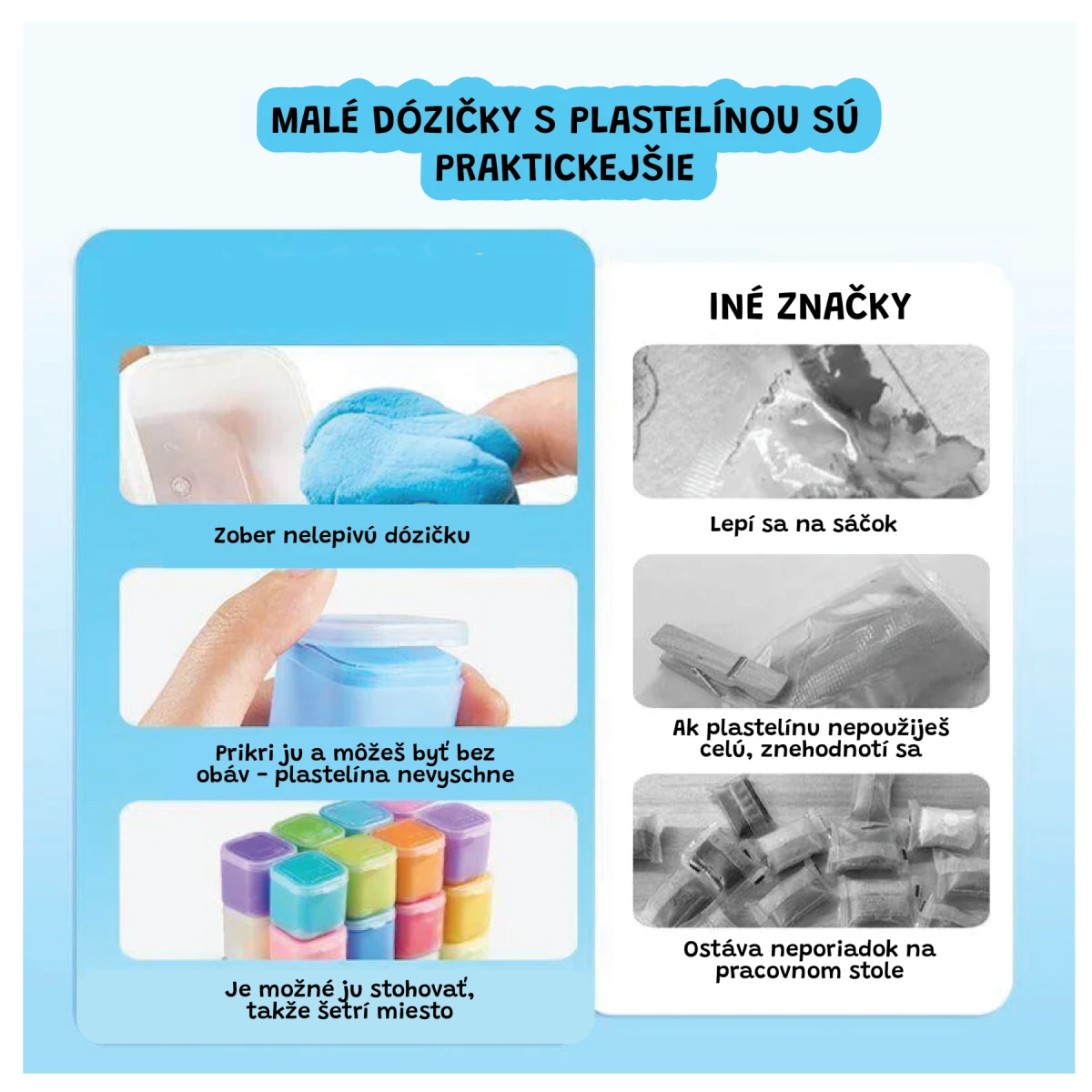 - Mini kapsule plastelíny – ideálne na dávkovanie a čistú kreativitu