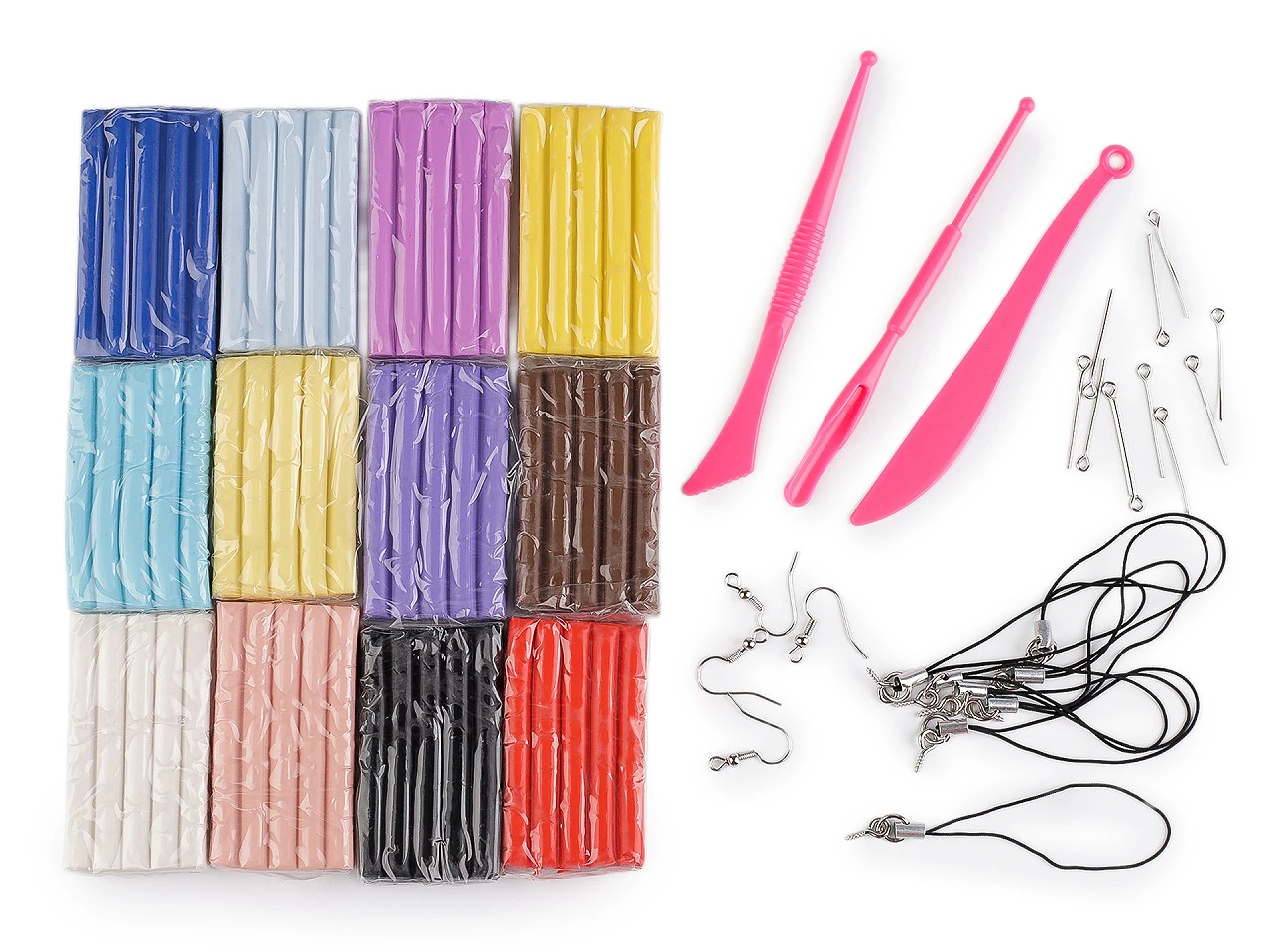 Vnútri balenia nájdete aj modelovacie náradie a bižutérne komponenty - afroháčiky, pútka a ketlovacie ihly. (Jednotlivé bižutérne komponenty sa v baleniach môžu líšiť).