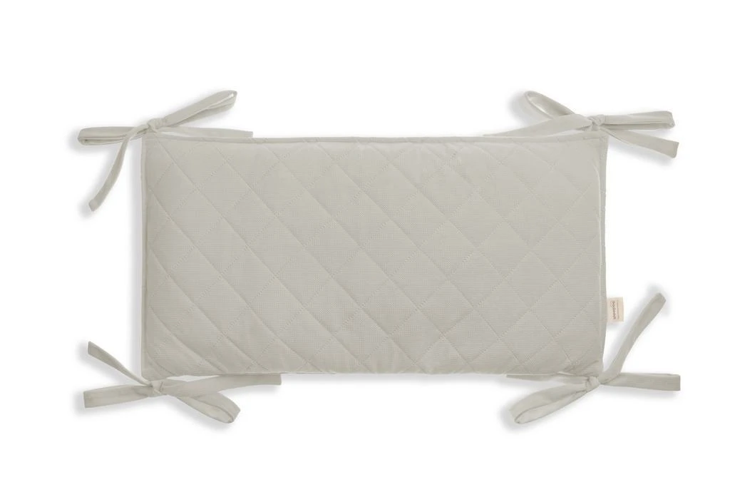 Vďaka šnúrkam umiestneným vo všetkých rohoch mantinelu môžete mantinel bezpečne zaviazať k priečkam postieľky a byť si istí, že bude držať na svojom mieste a nebude padať či skĺzavať.