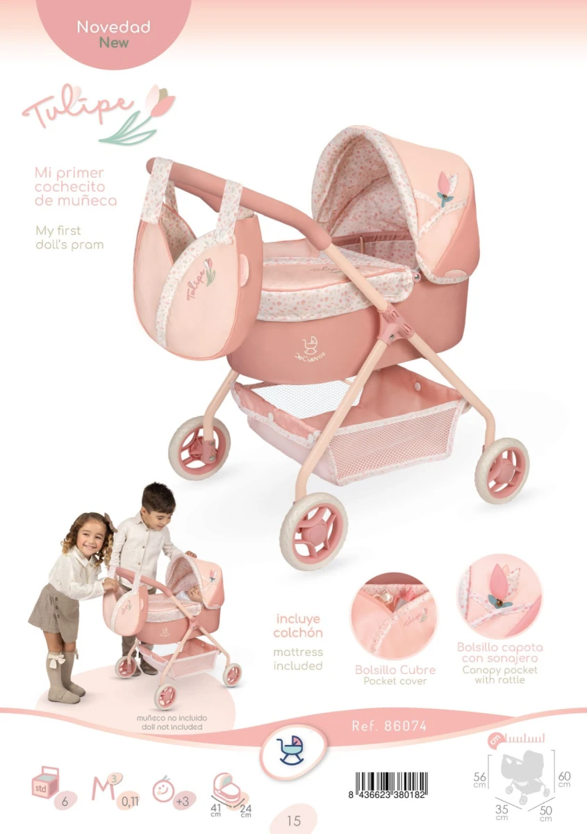 Môj prvý kočík pre bábiky s taškou Tulipe 56 cm DeCuevas