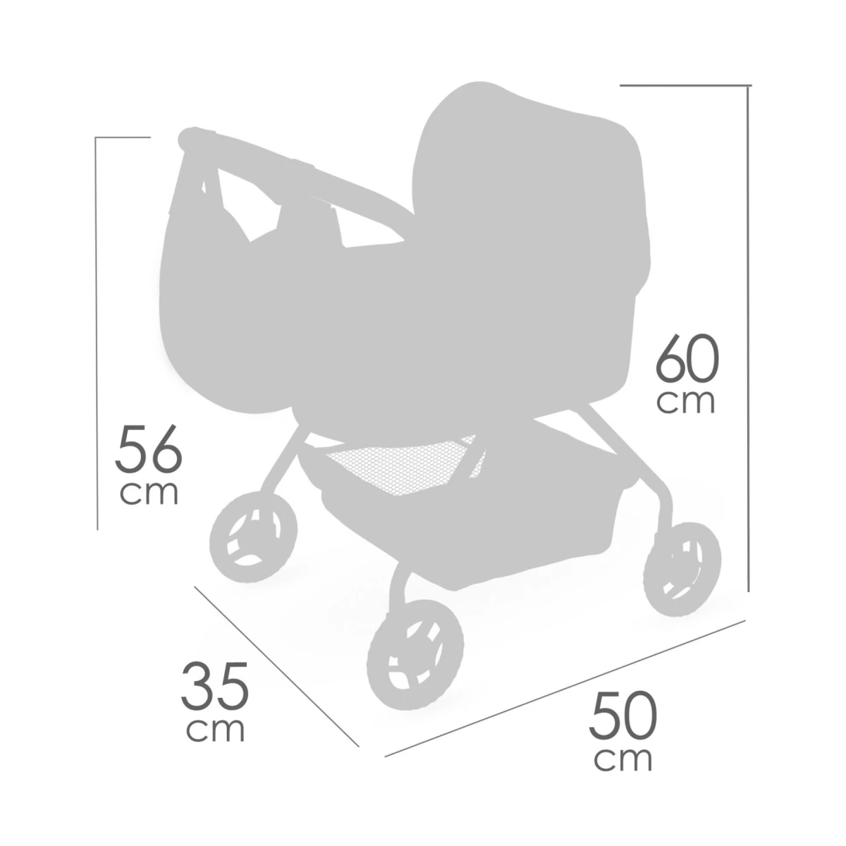 • Rozmery kočíka: 50 × 35 × 60 cm (celková výška kočíka)