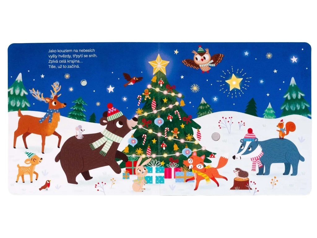 V zasneženom lese sa zvieratká chystajú na Vianoce. Táto veršovaná knižka s blikajúcimi svetielkami a zvukmi vám vykúzli sviatočnú náladu.