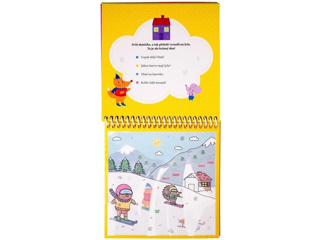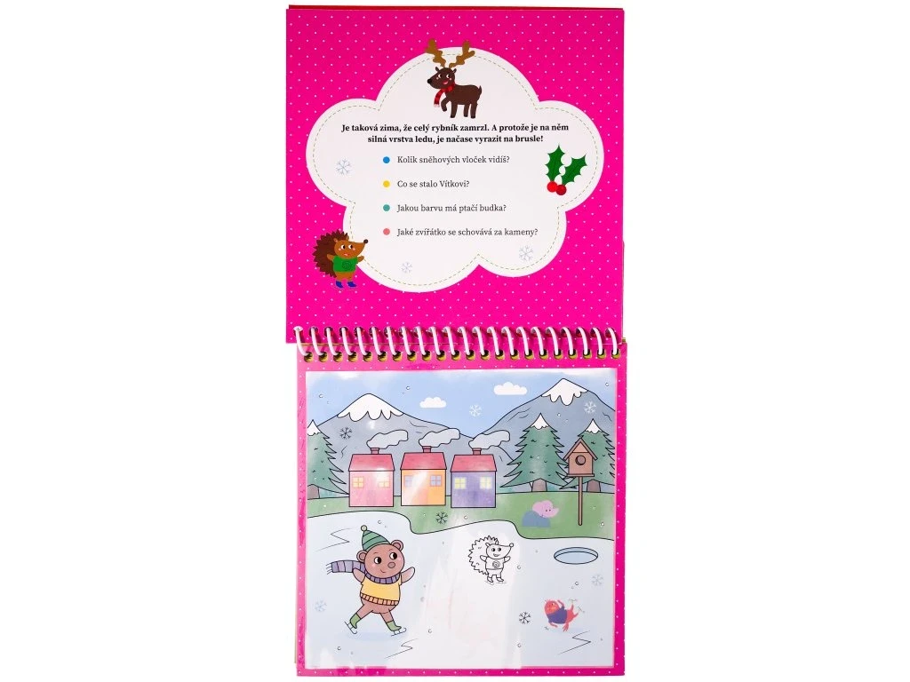Naplň fixku vodou a vyfarbuj stránky plné najkúzelnejšieho ročného obdobia. Čakajú ťa úlohy a otázky o snehu, zvieratkách a zimných radovánkach.