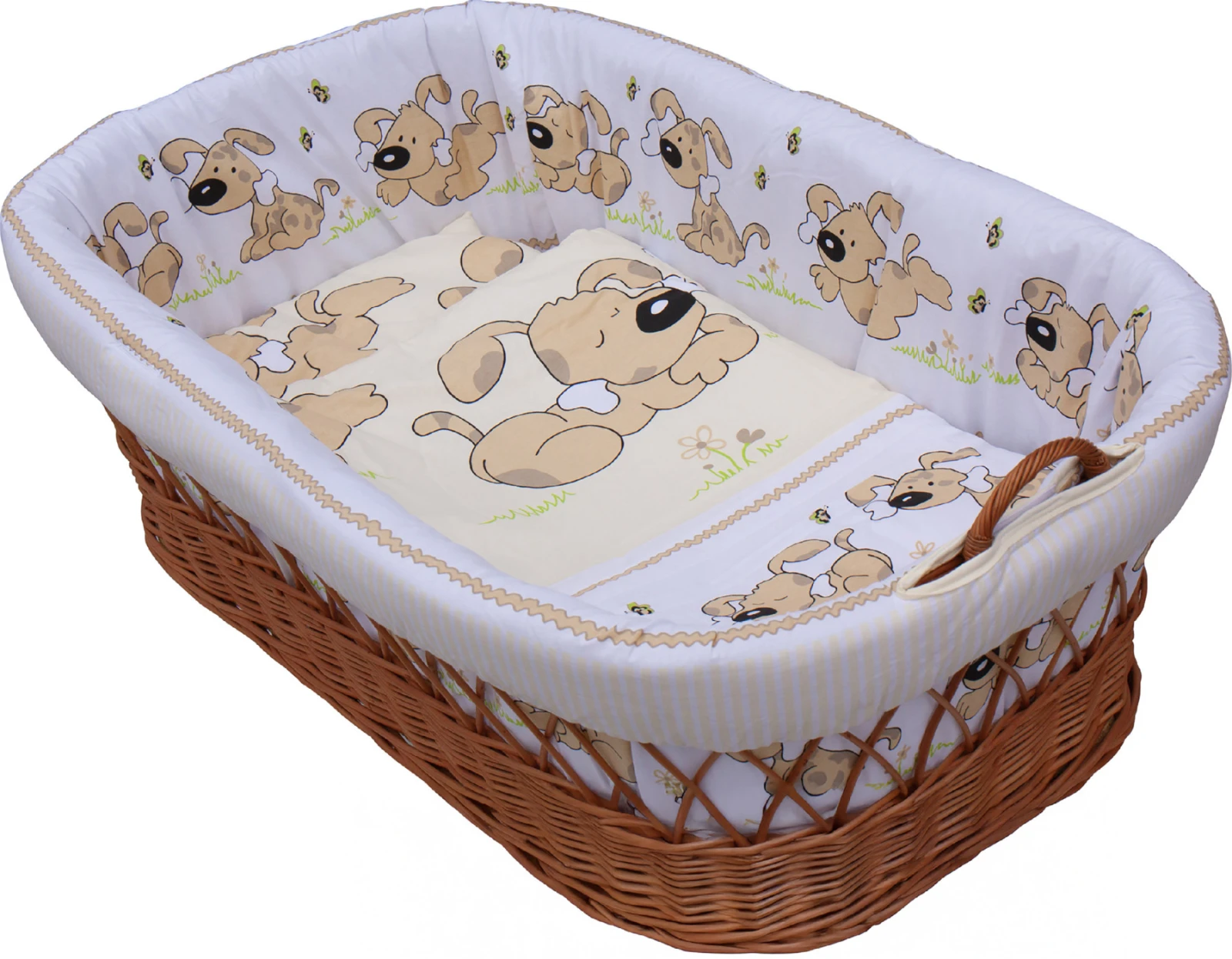 Súčasťou balenia je mäkký matrac a kompletná textilná súprava, vďaka ktorej je košík pripravený na okamžité použitie