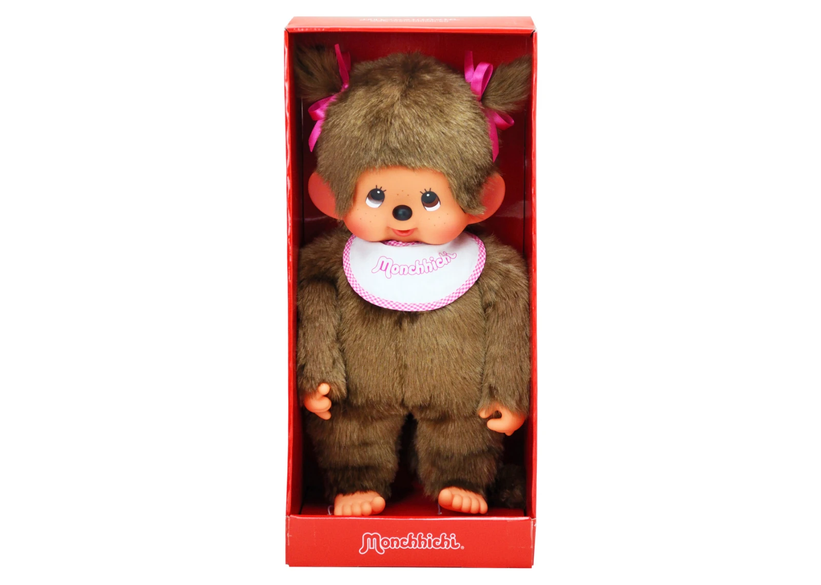 Monchhichi Mončiči dievča s ružovým podbradníkom o veľkosti 20 cm je roztomilá a hebká plyšová kamarátka, ktorú si malé deti okamžite zamilujú.
