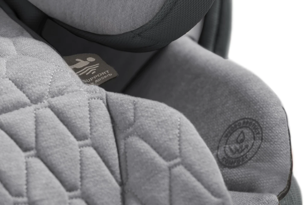 Nastaviteľná nepriepustná vložka pre novorodencov HydroProtect poskytuje pohodlie a bezpečie dieťaťu od narodenia. Osem polôh opierky hlavy umožňuje prispôsobiť autosedačku výške rastúceho dieťaťa. Tri polohy náklonu ponúkajú pohodlie pri spánku aj pri pozorovaní okolia z okna auta. 5-bodové bezpečnostné pásy s inovatívnym systémom EasyFit maximálne uľahčujú manipuláciu s dieťaťom. Od výšky 100 cm (cca od 4 rokov) sa dieťa v autosedačke púta bezpečnostnými pásmi vozidla. 5-bodové pásy sa v tomto veku dieťaťa ľahko skryjú do vnútra autosedačky. Pre maximálne pohodlie dieťaťa je autosedačka potiahnutá kombináciou mäkkej, priedušnej bambusovej tkaniny a textílie vyrábanej s ohľadom na udržateľnosť životného prostredia z recyklovaných PET fliaš.