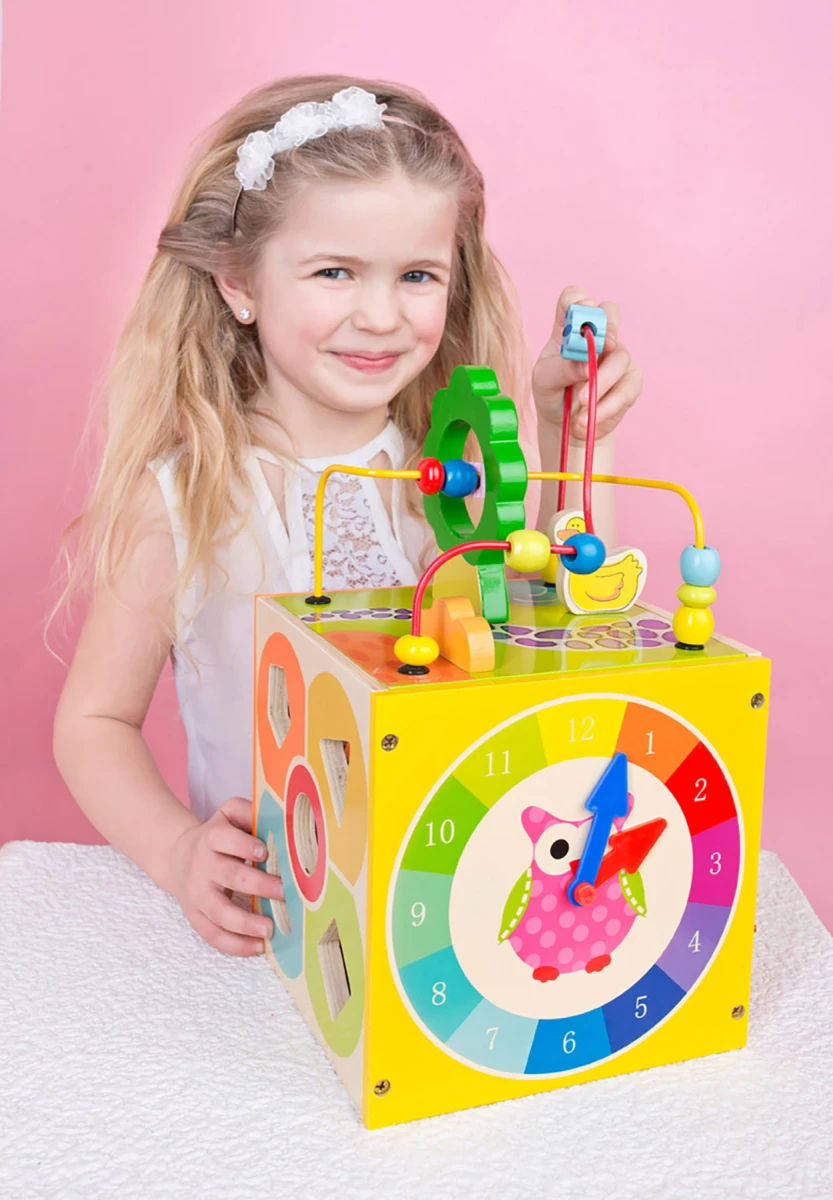 Vďaka rozmanitým aktivitám, ktoré môžu deti na každej stene kocky plniť, precvičujú jemnú motoriku ruky, logiku a sústredenosť.'