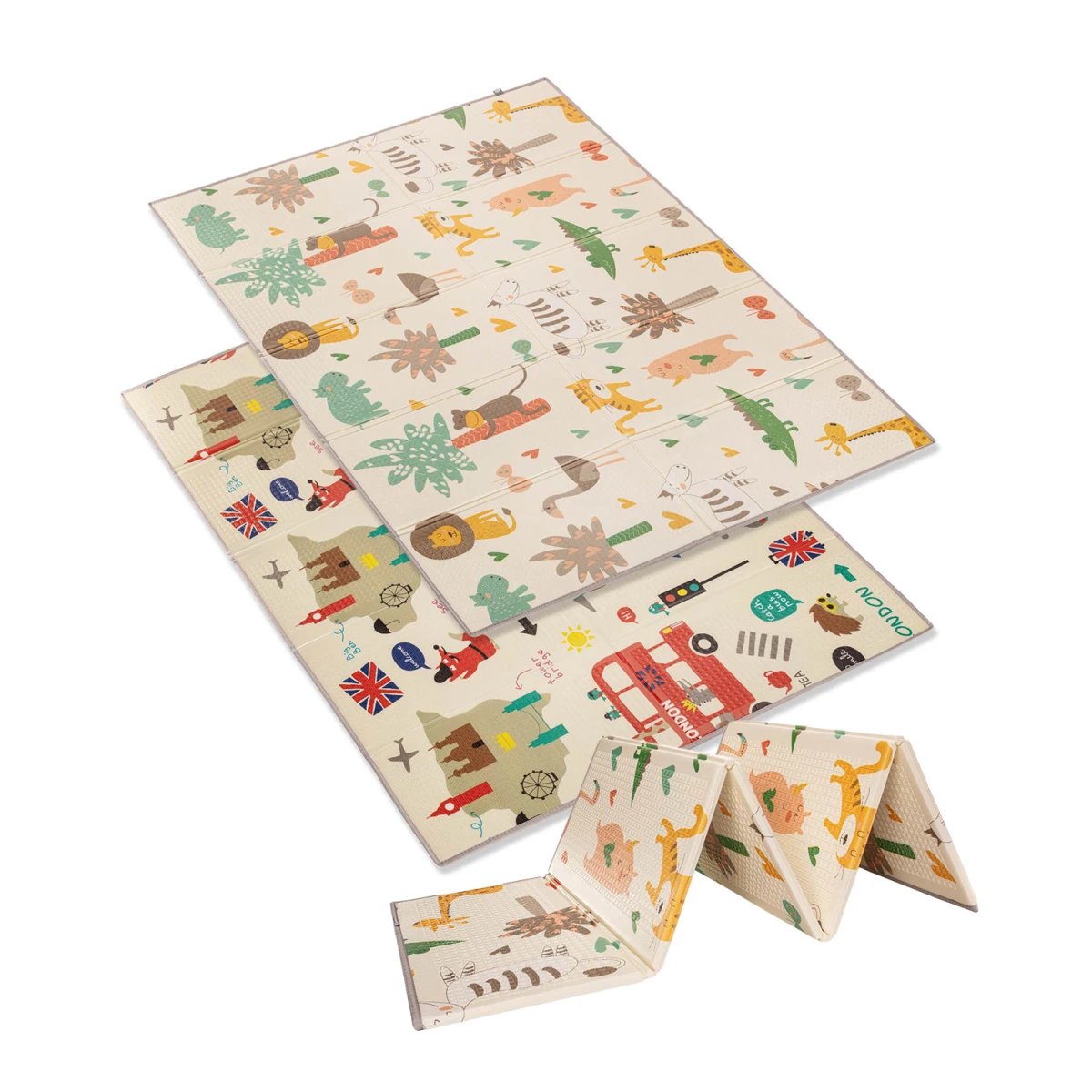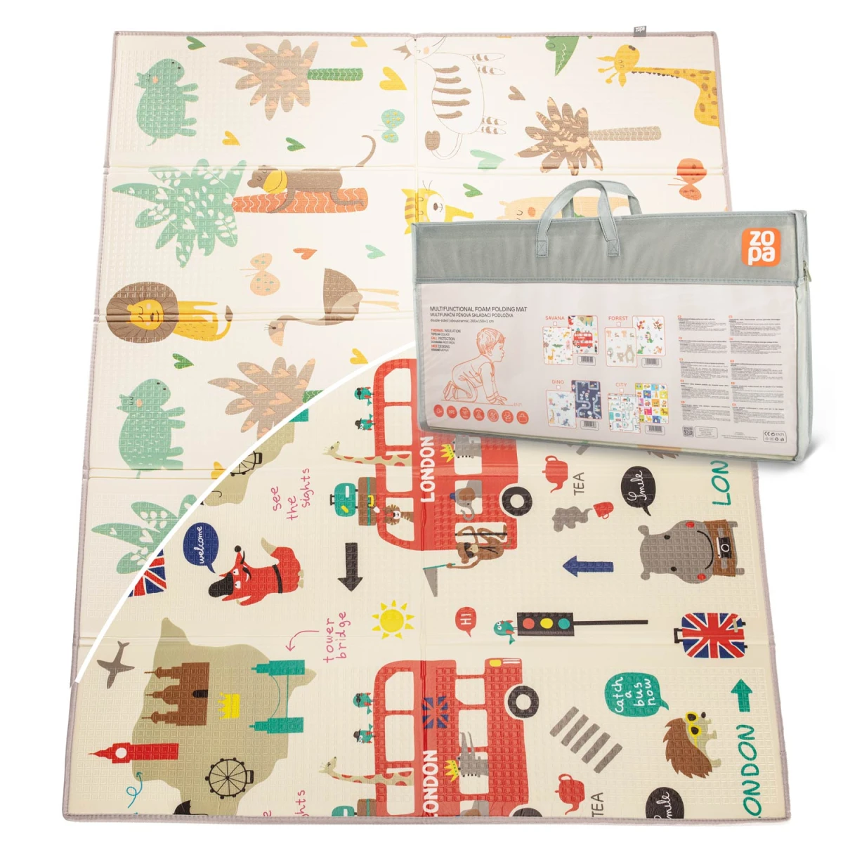 Multifunkčná obojstranná penová skladacia podložka Savana ponúka bezpečný a pohodlný priestor na hranie i odpočinok a zaujme jemným dizajnom inšpirovaným prírodou, ktorý oživí každý detský kútik.