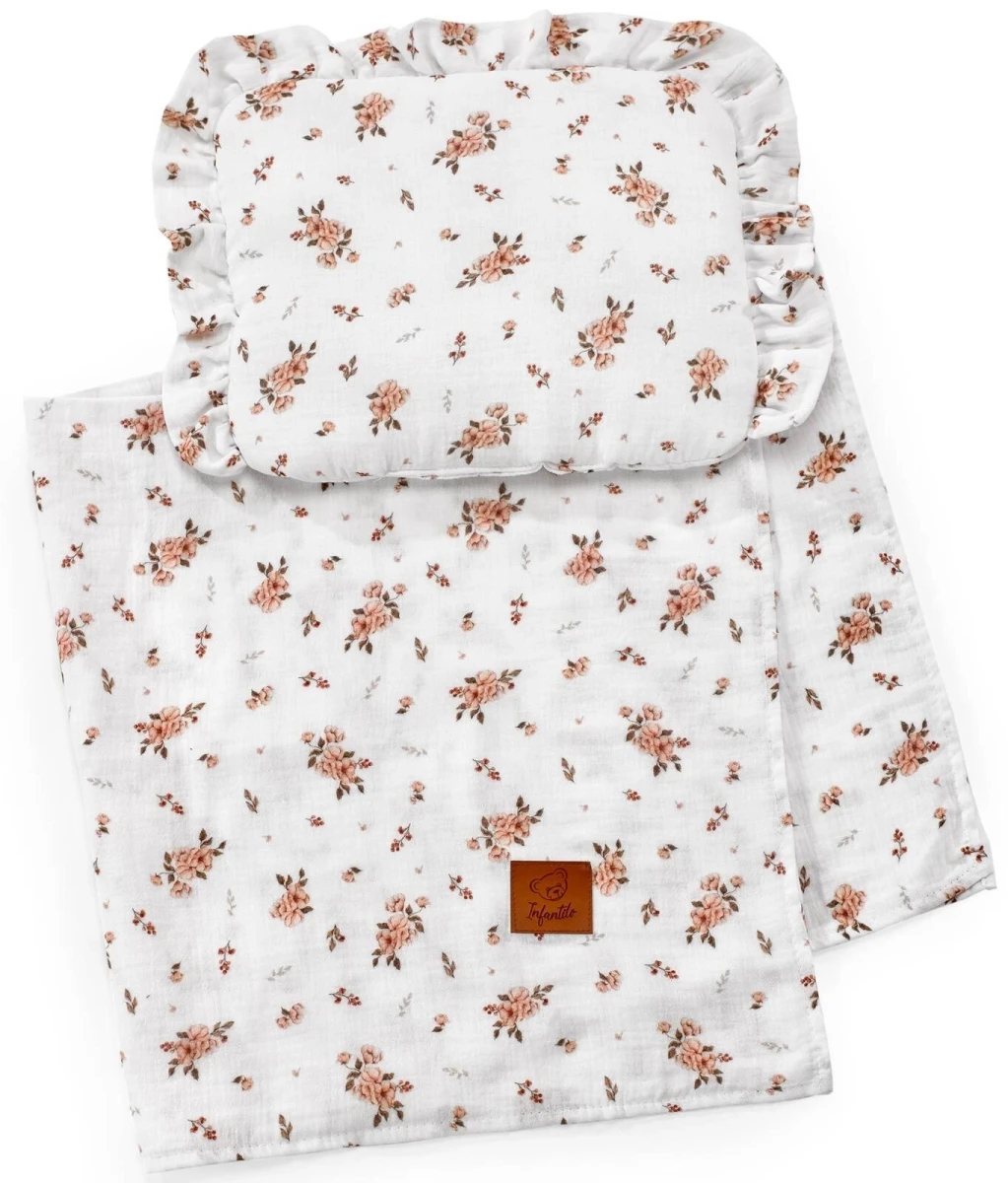 Mušelínová letná sada vankúš s volánikmi Malé kvety Infantilo
