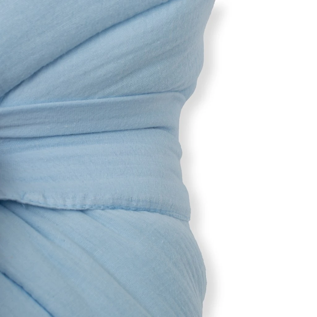 Mušelín je jedna z najčistejších, najjednoduchších a najjemnejších tkanín na svete. A čím je tak výnimočný? Predovšetkým jeho priedušnosťou. Ľahká štruktúra umožňuje mušelínu „dýchať“ a zaisťuje dostatočnú cirkuláciu vzduchu, čím znižuje riziko prehriatia. Mušelín je veľmi odolný a to tak, že bez problémov zvláda opakované pranie a postupom času je ešte ľahší a jemnejší.