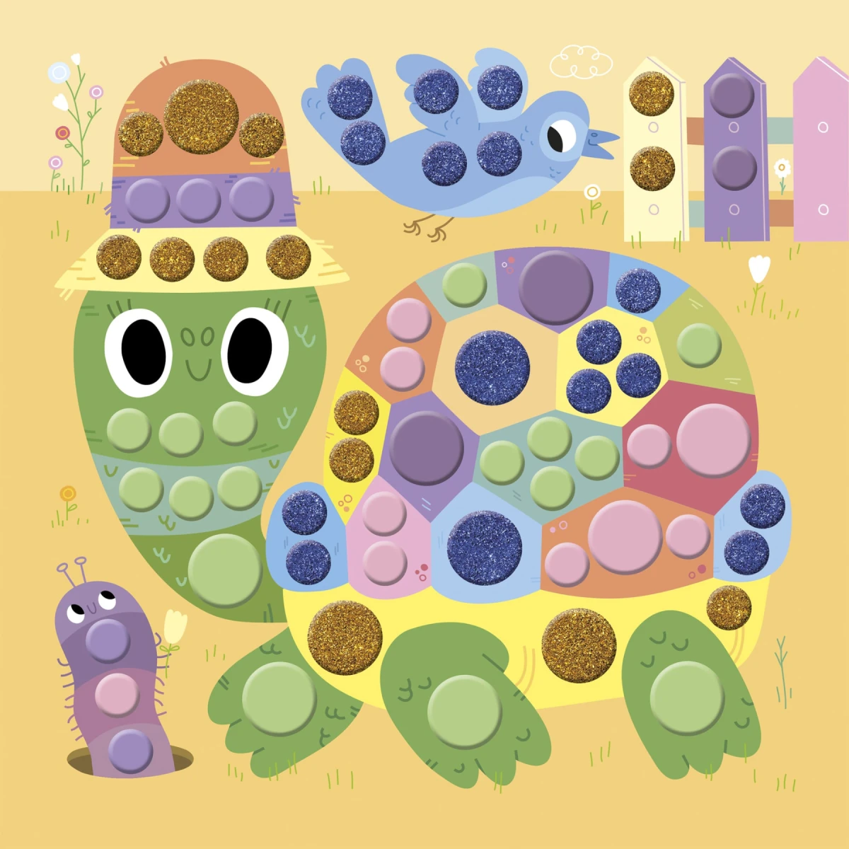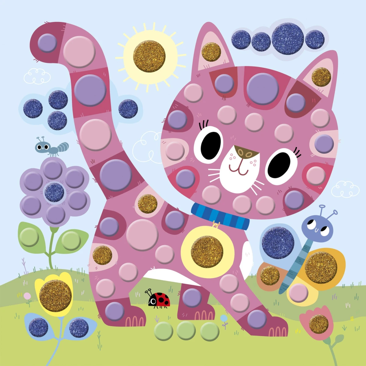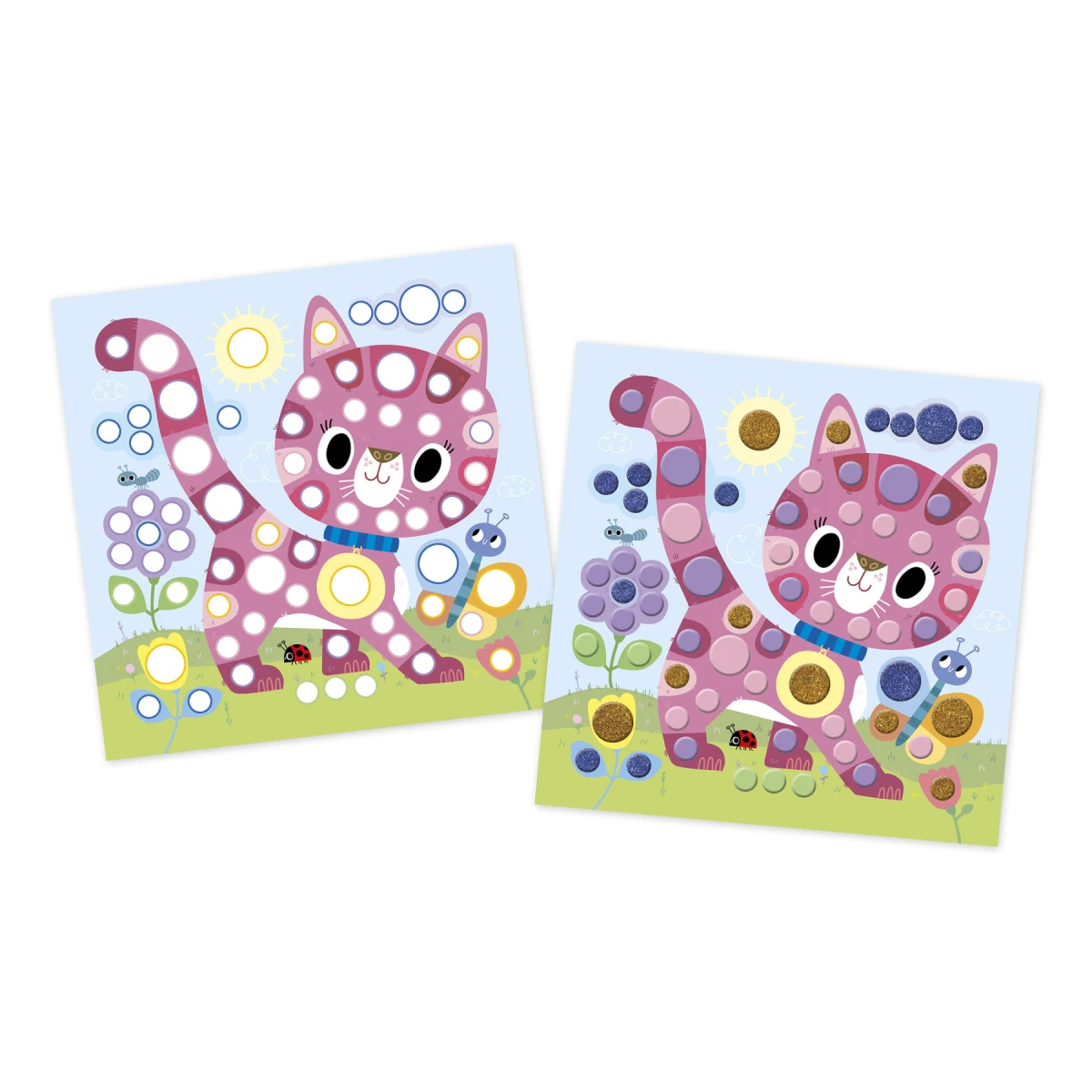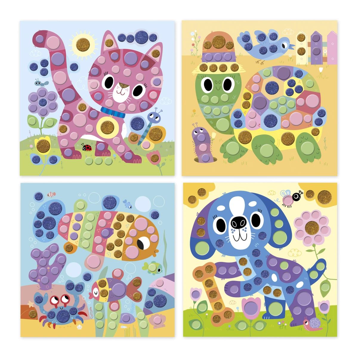 Táto sada na tvorenie zahŕňa zdobenie obrázkov zvierat guľatými mozaikami.