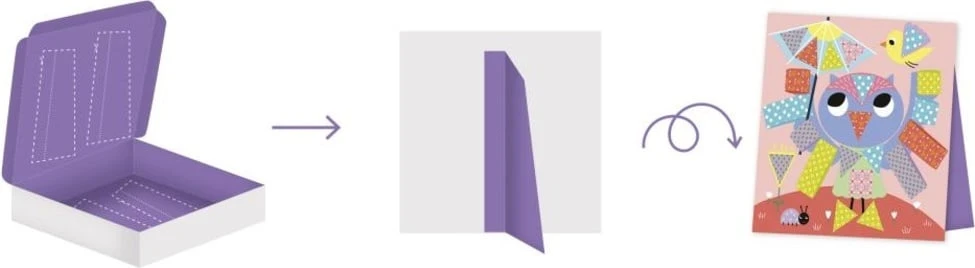 Táto kreatívna súprava obsahuje všetko, čo malí tvorcovia potrebujú na dokončenie 4 obrázkov – deti vystrihnú vzorované papierové prvky a nalepia ich na správne miesto. Clever Box splní presne to, čo sľubuje na obale – premení sa na stojan na vystavenie hotových výtvorov.