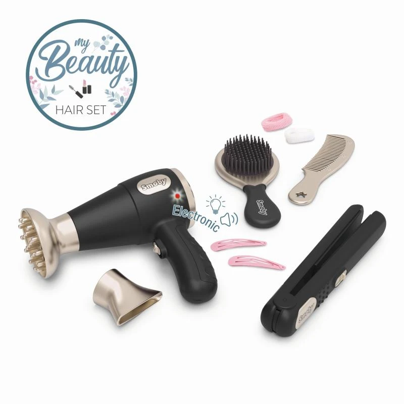 Staň sa pravou kaderníčkou s kaderníckou sadou My Beauty s fénom a príslušenstvom ! Táto interaktívna sada obsahuje všetko, čo je potrebné k dokonalému účesu - fén so svetelnou a zvukovou funkciou , žehličku na vlasy , kefu , hrebeň , sponky a gumičky do vlasov .