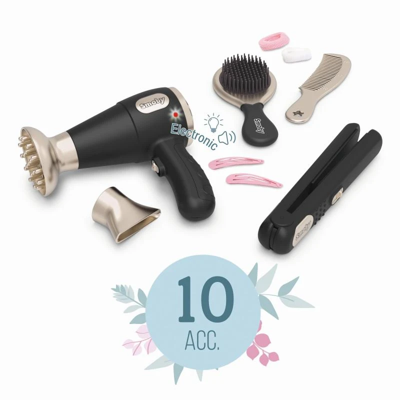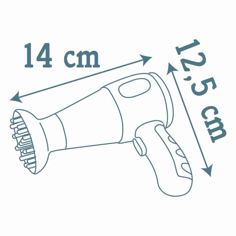 Fén po stlačení tlačidla vydáva realistický zvuk a rozsvieti sa kontrolka , rovnako ako u skutočného prístroja. Má 2 vymeniteľné nástavce a rozmery približne 14 × 2,5 cm . Všetko príslušenstvo je detailne a realisticky spracované , takže hra pôsobí ako naozajstné kadernícke štúdio.