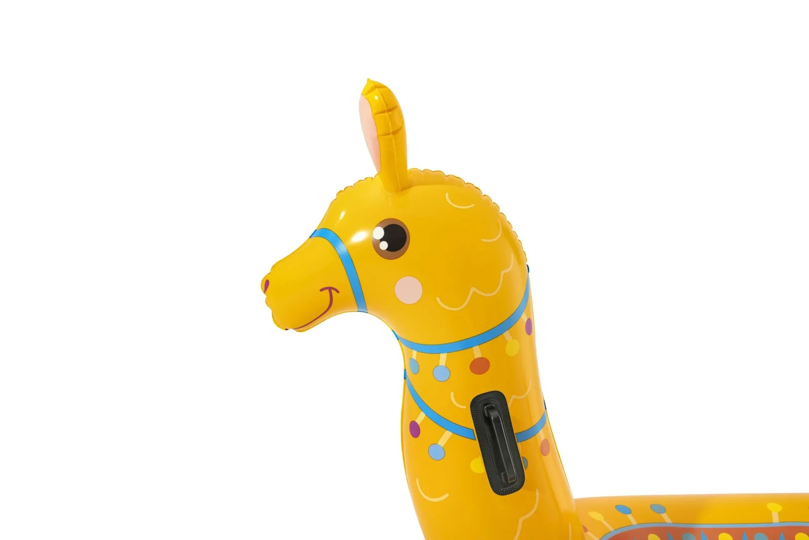 Lama je vybavená praktickými plastovými madlami na dlhom krku, ktoré zaisťujú lepšiu stabilitu a bezpečnejšie držanie pri jazde. Kvalitný a odolný vinyl zaručuje dlhú životnosť aj pri častom používaní.