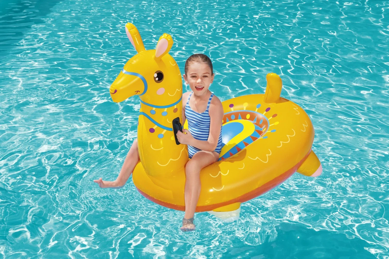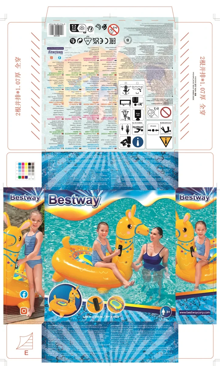 Zábavná jazda na vode s farebnou lamou! Nafukovacia lama Bestway je štýlový a hravý doplnok do bazéna, ktorý si deti okamžite zamilujú. Vďaka veselému farebnému designu sa stane neprehliadnuteľnou súčasťou každej letnej zábavy.