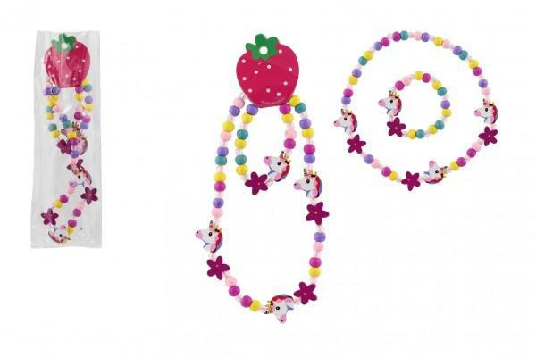 Náhrdelník a náramok korálky jednorožec drevo/plast 20 cm