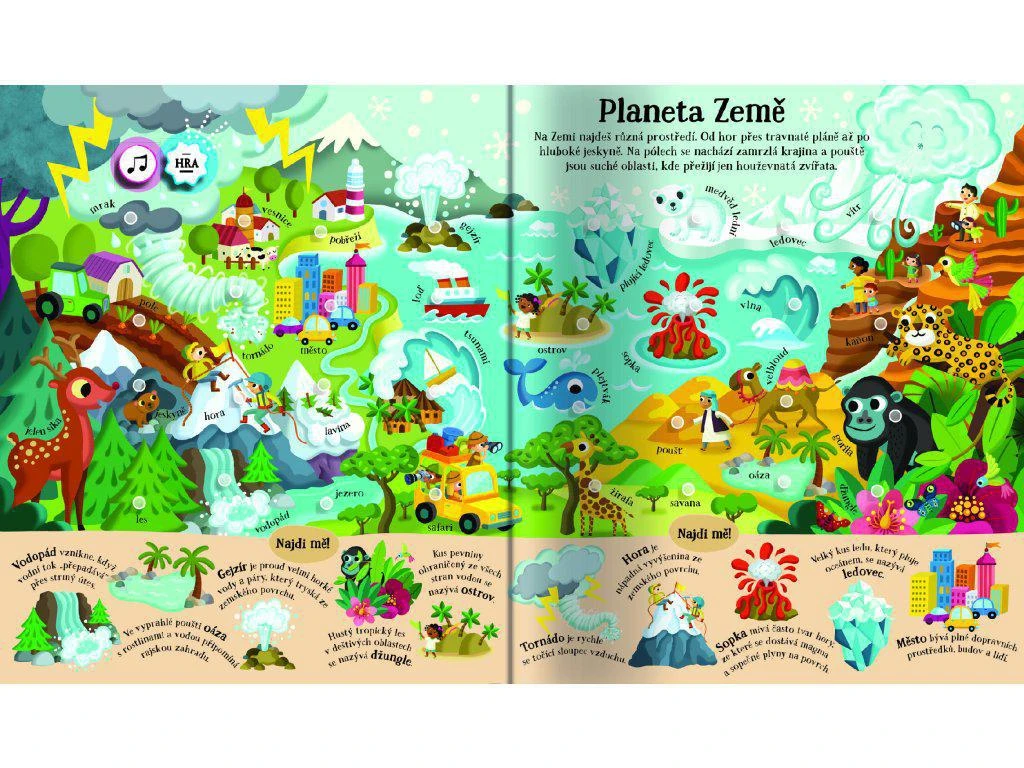 V tejto kúzelnej interaktívnej zvukovej knižke s krásnymi ilustráciami nájdete cez 200 zvukov a názvov zo siedmich rôznych prostredí z celého sveta!