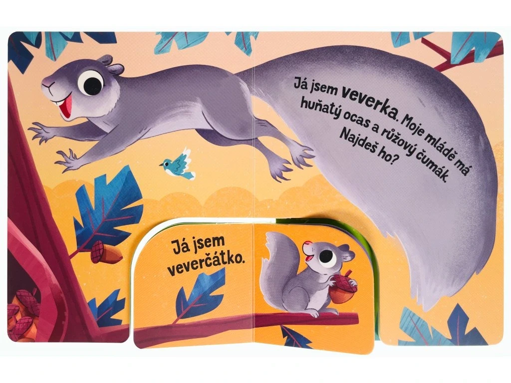 Originálne spojenie dvoch leporel o rôznych veľkostiach predstaví deťom formou hry na hľadanie zvierat z lesa a ich mláďatá.