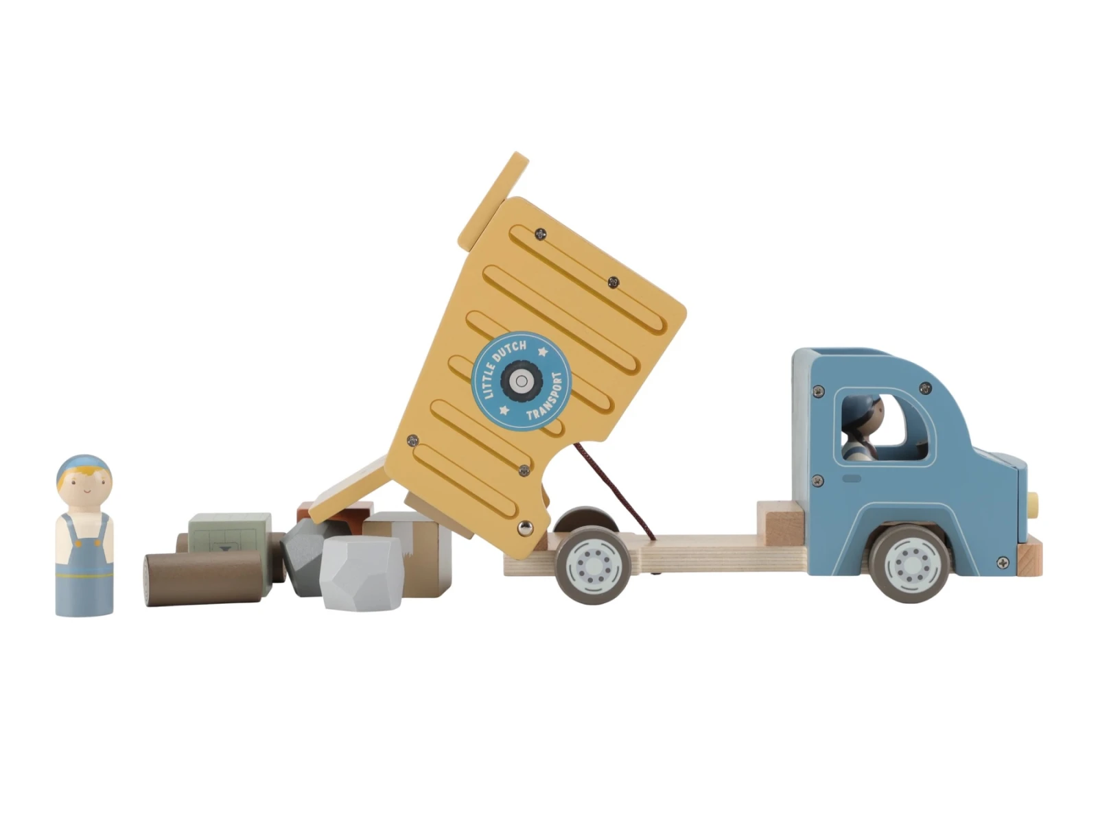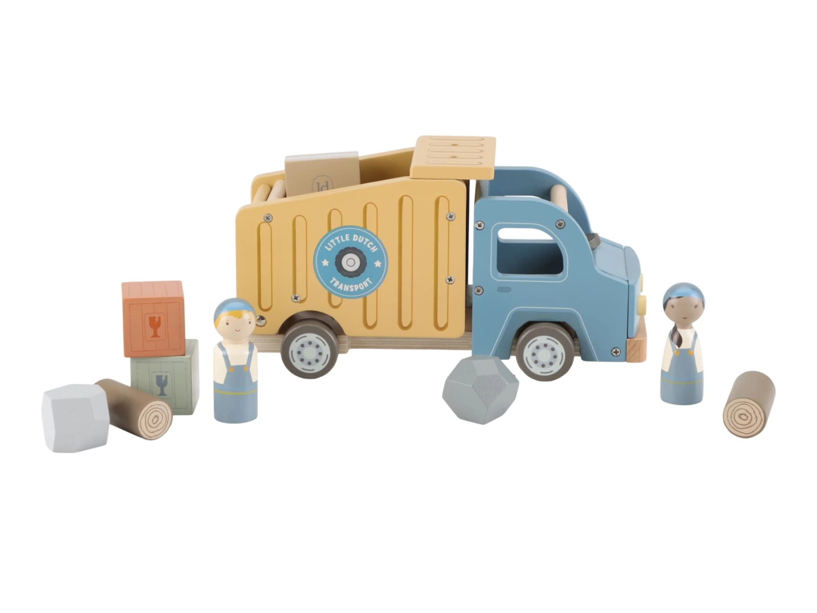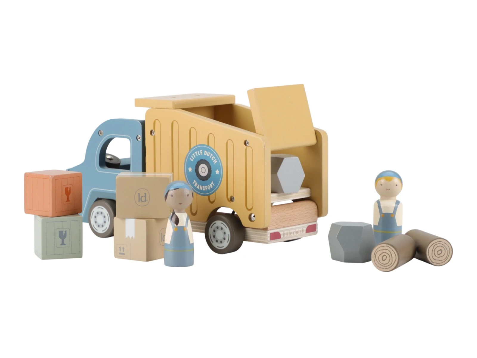 Auto má funkčnú sklápaciu korbu, vďaka ktorej deti ľahko naložia a vyložia svoj náklad. Súčasťou balenia sú dvaja vodiči a rôzne typy nákladu – klády, kamene a drevené debničky. Deti tak môžu vymýšľať stále nové príbehy, rozvíjať fantáziu a precvičovať jemnú motoriku.