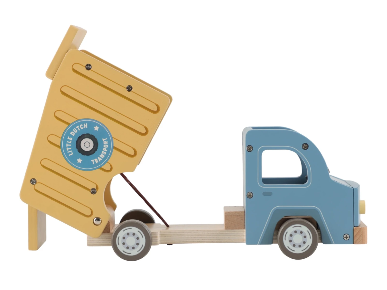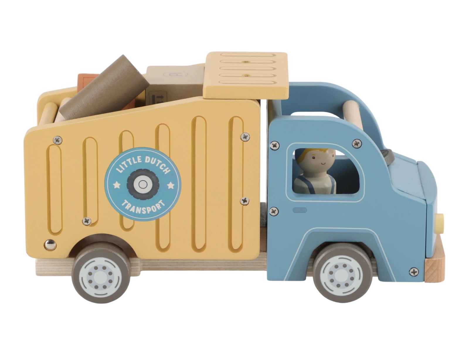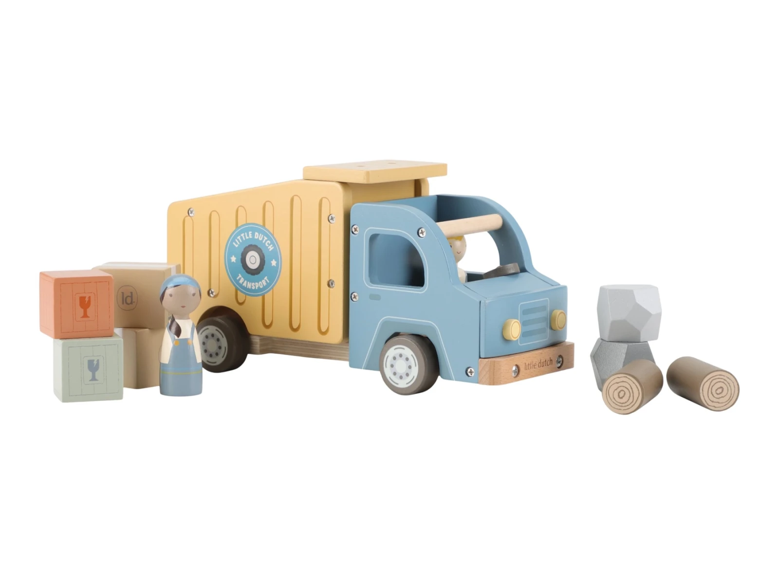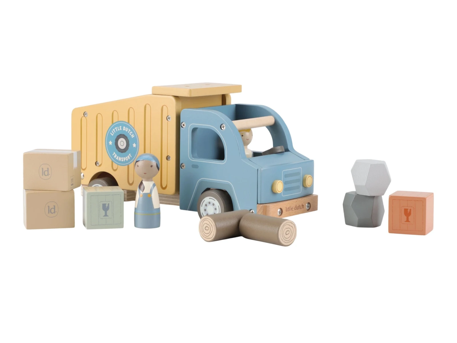 Auto má funkčnú sklápaciu korbu, vďaka ktorej deti ľahko naložia a vyložia svoj náklad. Súčasťou balenia sú dvaja vodiči a rôzne typy nákladu – klády, kamene a drevené debničky. Deti tak môžu vymýšľať stále nové príbehy, rozvíjať fantáziu a precvičovať jemnú motoriku.