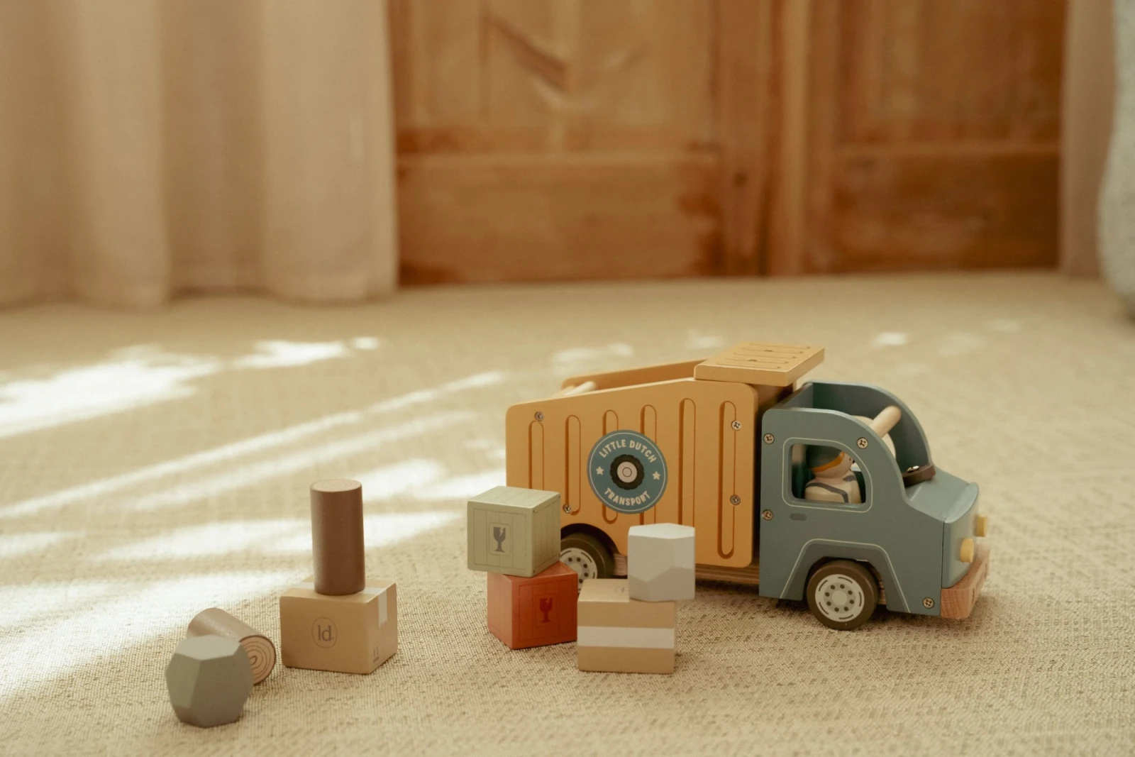 Nákladiak so sklápačkou je ideálna hračka pre malých staviteľov, ktorí chcú prevážať, vykladať a vymýšľať nové príbehy. Kvalitné drevené prevedenie s dôrazom na detail zaisťuje dlhú životnosť a hodiny kreatívnej hry.