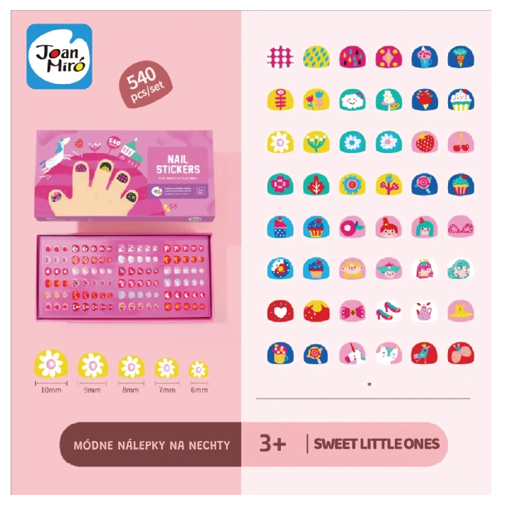 Táto sada obsahuje 540 farebných nálepiek na nechty s nežnými dizajnmi zvieratiek, hviezdičiek a ďalších motívov. Nálepky sú netoxické, ideálne na pohodlné používanie aj pre citlivú detskú pokožku.