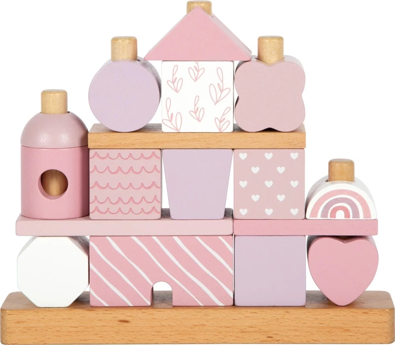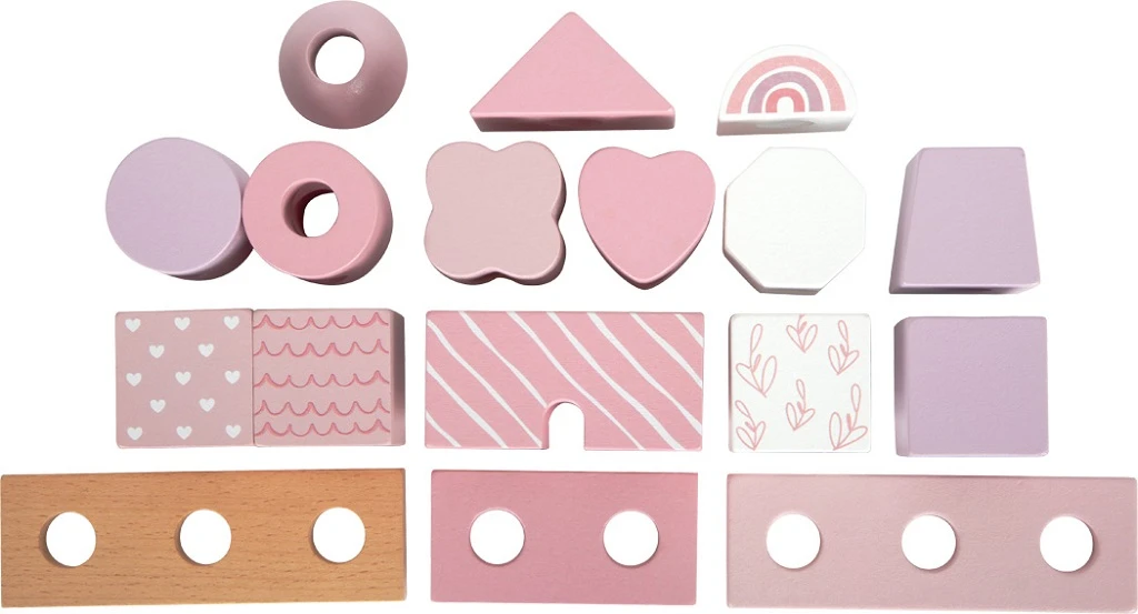 Tento drevený stohovací domček v jemných pastelových odtieňoch ružovej s prírodnými prvkami očarí nielen svojim dizajnom, ale aj variabilitou.
