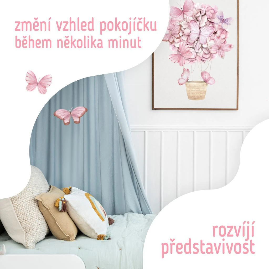 Nástenné samolepky do detskej izby, Pink Butterflies Sipo