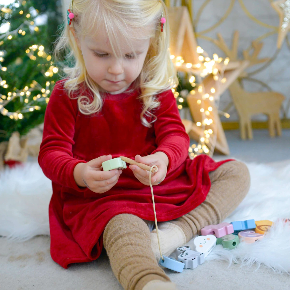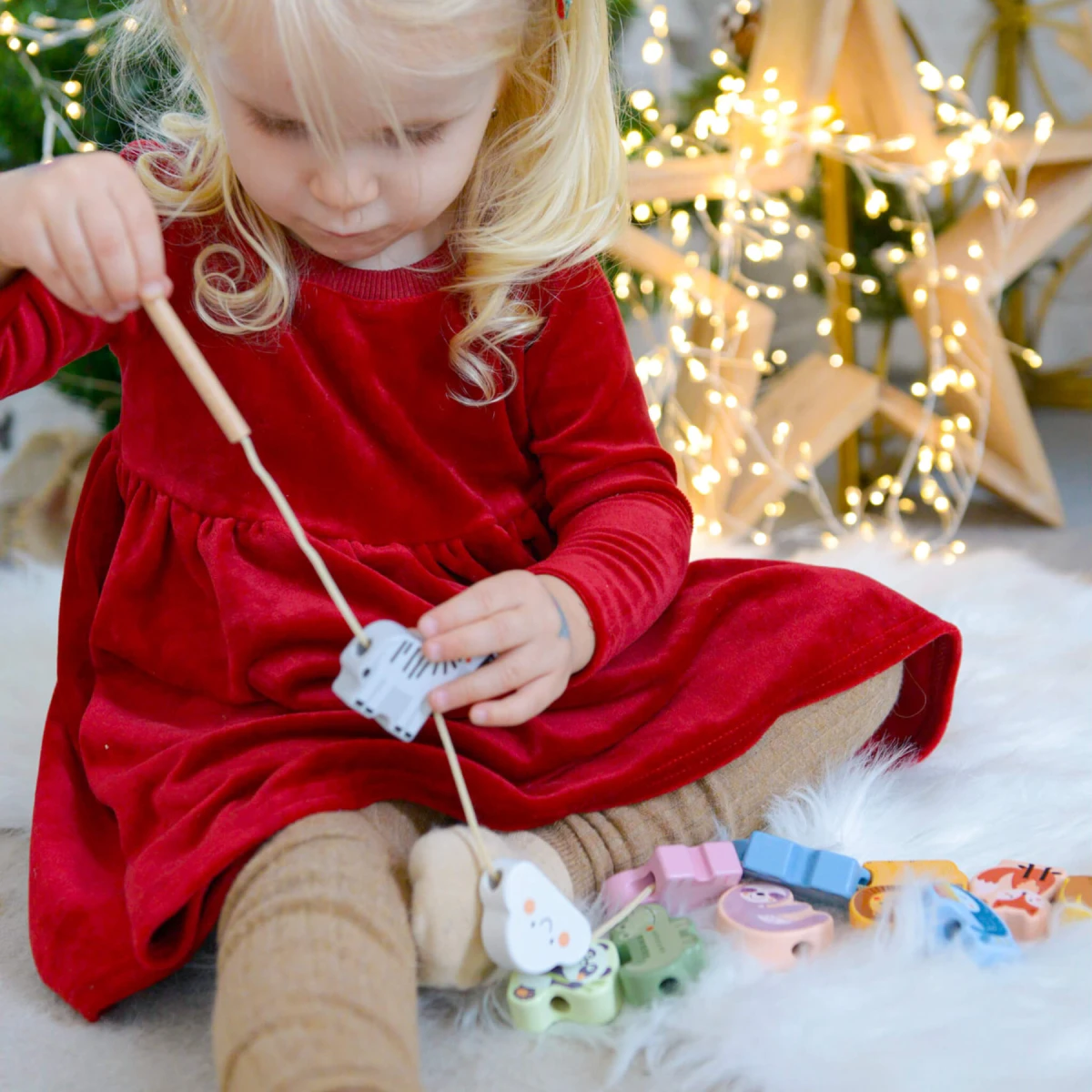 - Sada obsahuje 12 zvierat a bezpečnú drevenú ihlu so špagátom - navliekanie navliekanie podporuje jemnú motoriku a koordináciu ruky a oka.