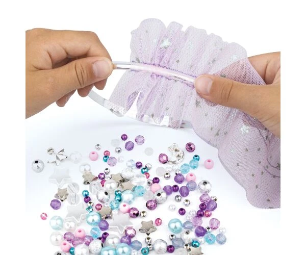 Nebulous Stars ozdoby do vlasov Estrelia. Vyrob si vlastné ozdoby do vlasov so strapcami. Obsah balenia - 3 tylové pásky, 1 čelenka, 1 spona, výber korálok a príveskov, gumičky, príbeh, návod.