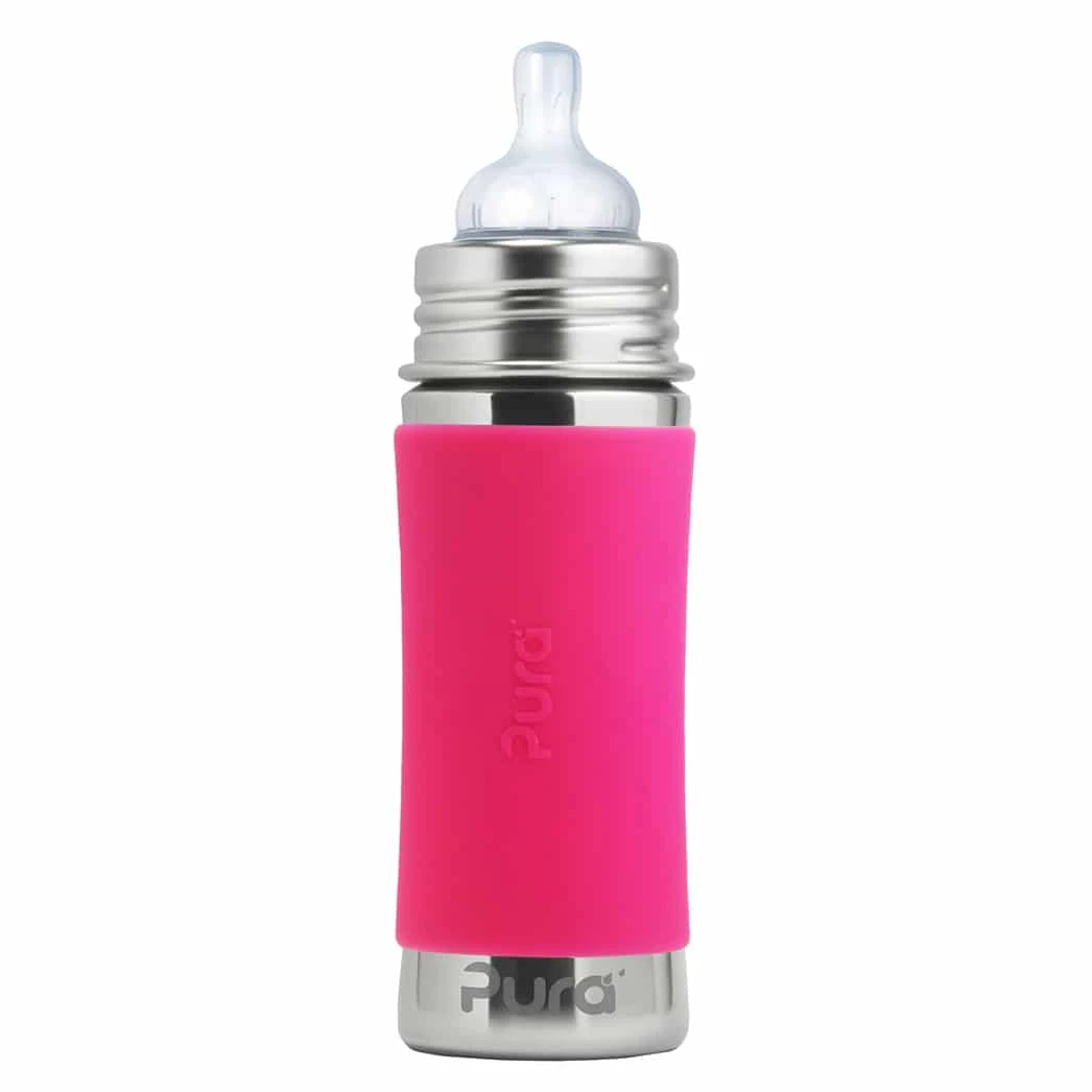 Najbezpečnejšia, najuniverzálnejšia, ľahká a nerozbitná ekologická fľaša, ktorá získala viac ako 35 ocenení. Prvá fľaša na trhu 100% bez plastových častí a jediná fľaša, ktorá získala certifikát NonToxic Certified. Baby Grows… Bottle EvolvesTM - patentovaný systém umožňuje použiť akúkoľvek Pura fľašu s akýmkoľvek Pura uzáverom. Jednoducho tak zmeníte dojčenskú fľašu na fľašu s náustkom, slamkou alebo športovým uzáverom, alebo s použitím tesniaceho disku na pohárik na príkrmy a drobné občerstvenie. Jednu fľašu tak môžete používať roky a zároveň šetríte peniaze aj životné prostredie. Fľaša a objímka sú vyrobené z antibakteriálnej nerezovej ocele # 304 (18/8) a ostatné časti zo silikónu najvyššej medicínskej kvality.