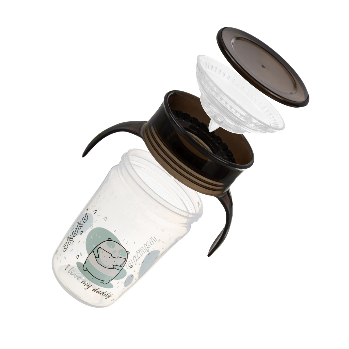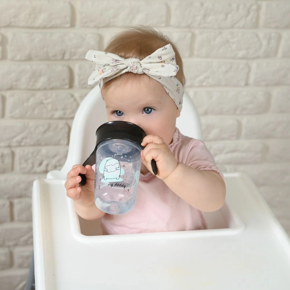 Nevytekajúci hrnček 360 ° je navrhnutý tak, aby sa deti naučili piť samy.