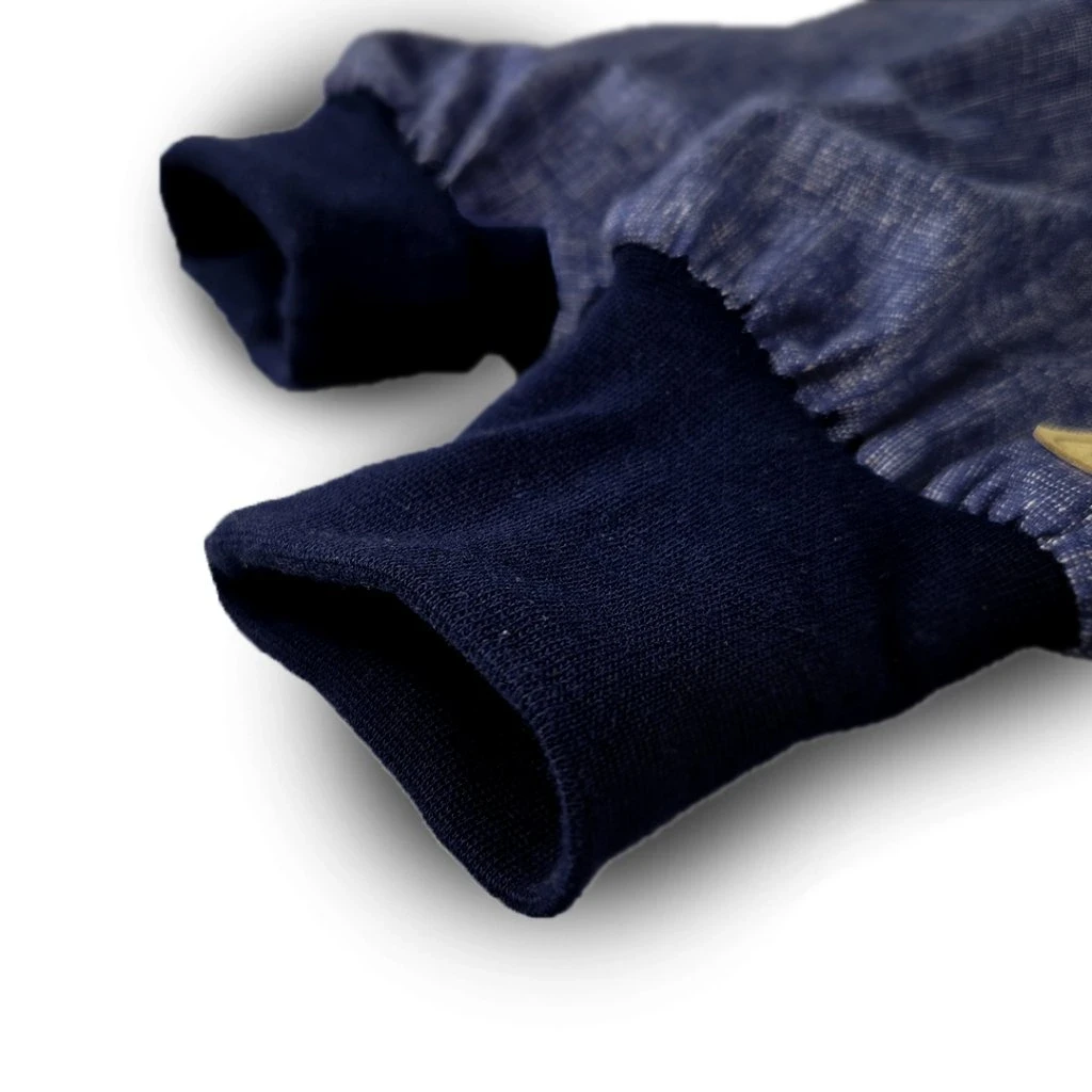 Pás a nohavice teplákov sú opatrené širokými nápletmi , vďaka ktorým tepláky skvele sedia na každej postave. Tieto náplety slúžia tiež na upravenie veľkosti teplákov podľa aktuálnej výšky dieťaťa - ohrňte náplety tak, aby mali nohavice potrebnú dĺžku. Vďaka tomuto praktickému strihu sa tepláky skvele prispôsobia viac veľkostiam a dieťaťu tak dlhšie vydržia.